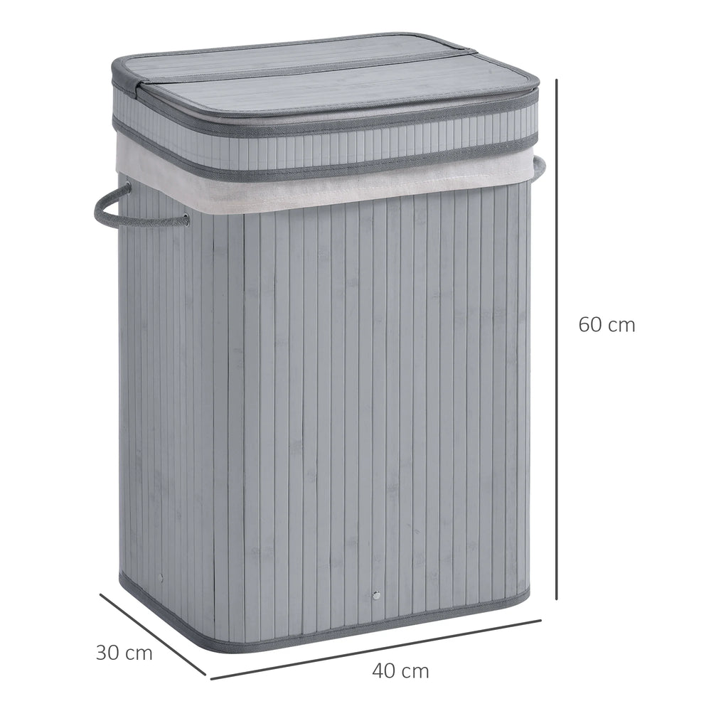 HOMCOM 70L Natural Wood Laundry Basket A Compartment w/Flip Lid Removable Lining Handles Board Base Foldable Durable Water-Resistant Dirty Clothes Storage Home Organisation Grey