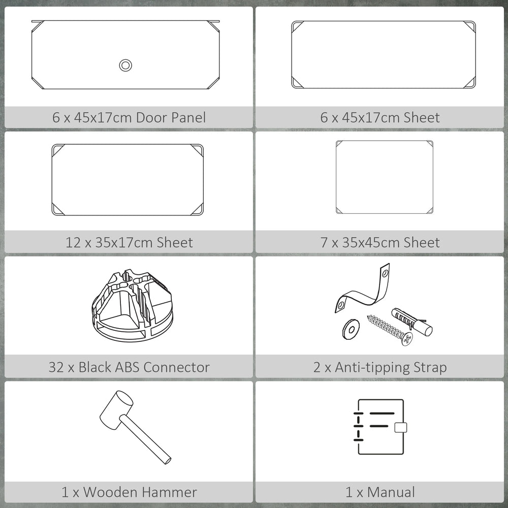 A storage unit, your way, with this HOMCOM modular box. Comes with six individual boxes, which can be set to the shape you want - set it up to fit plenty of different spaces. Each cube measures 35 x 45cm, so there's enough room for holding plenty of clothing, accessories and similar; large enough to hold two shoe pairs. A steel frame for a strong core, with a plastic body for a tough, protective shell.