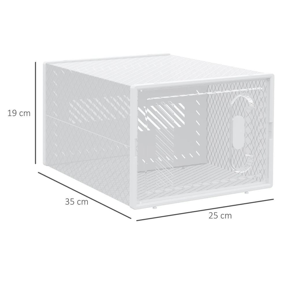Tired of shoes cluttering your home and gathering dust? Our HOMCOM clear shoe boxes offer a customizable design with eight cubes that can be arranged in any configuration. The cutout design on top allows for secure stacking, making it easy to fit in any space. With transparent plastic, you can quickly find what you need. A practical and stylish addition to your home!
