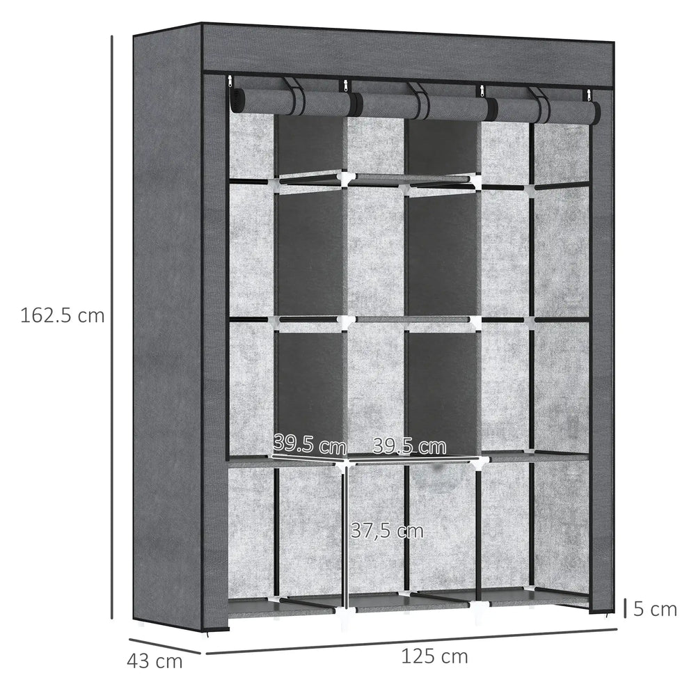 HOMCOM Fabric Wardrobe, with Rails and Shelves - Dark Grey