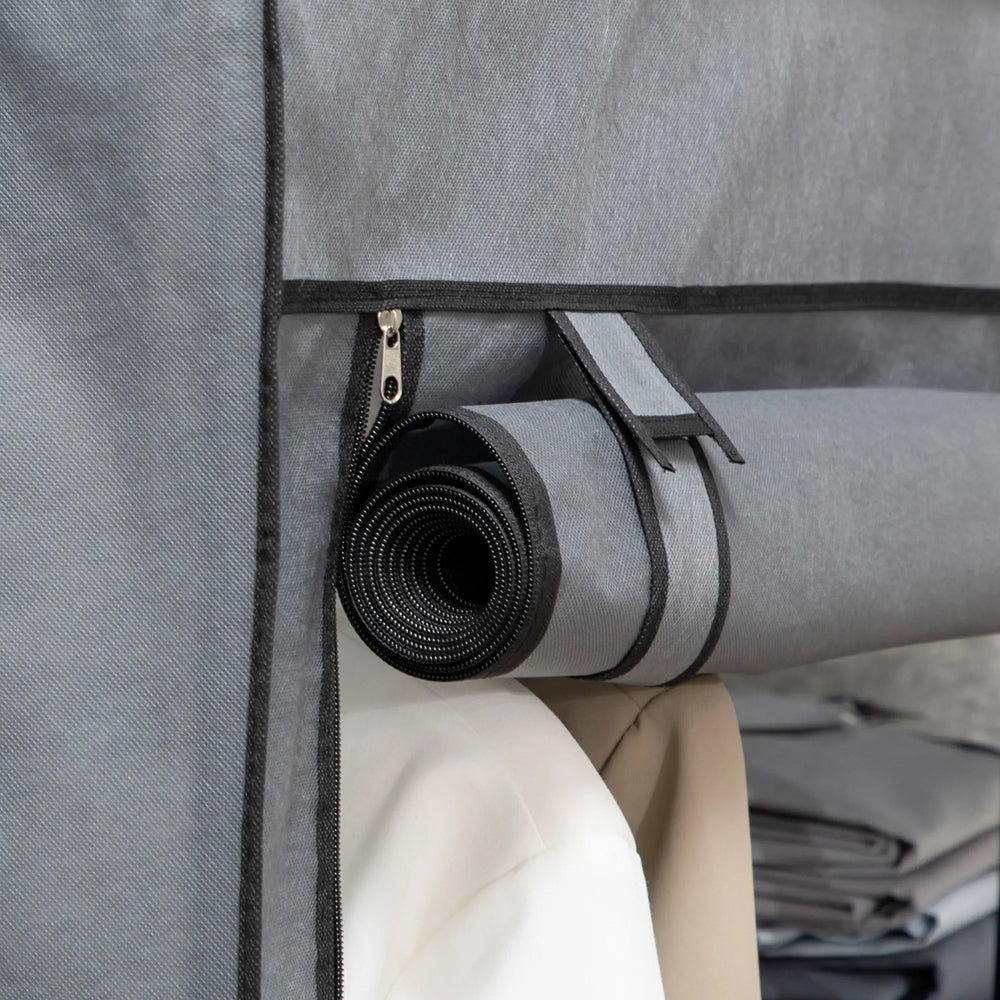 HOMCOM Rail and Six Shelf Fabric Wardrobe - Dark Grey