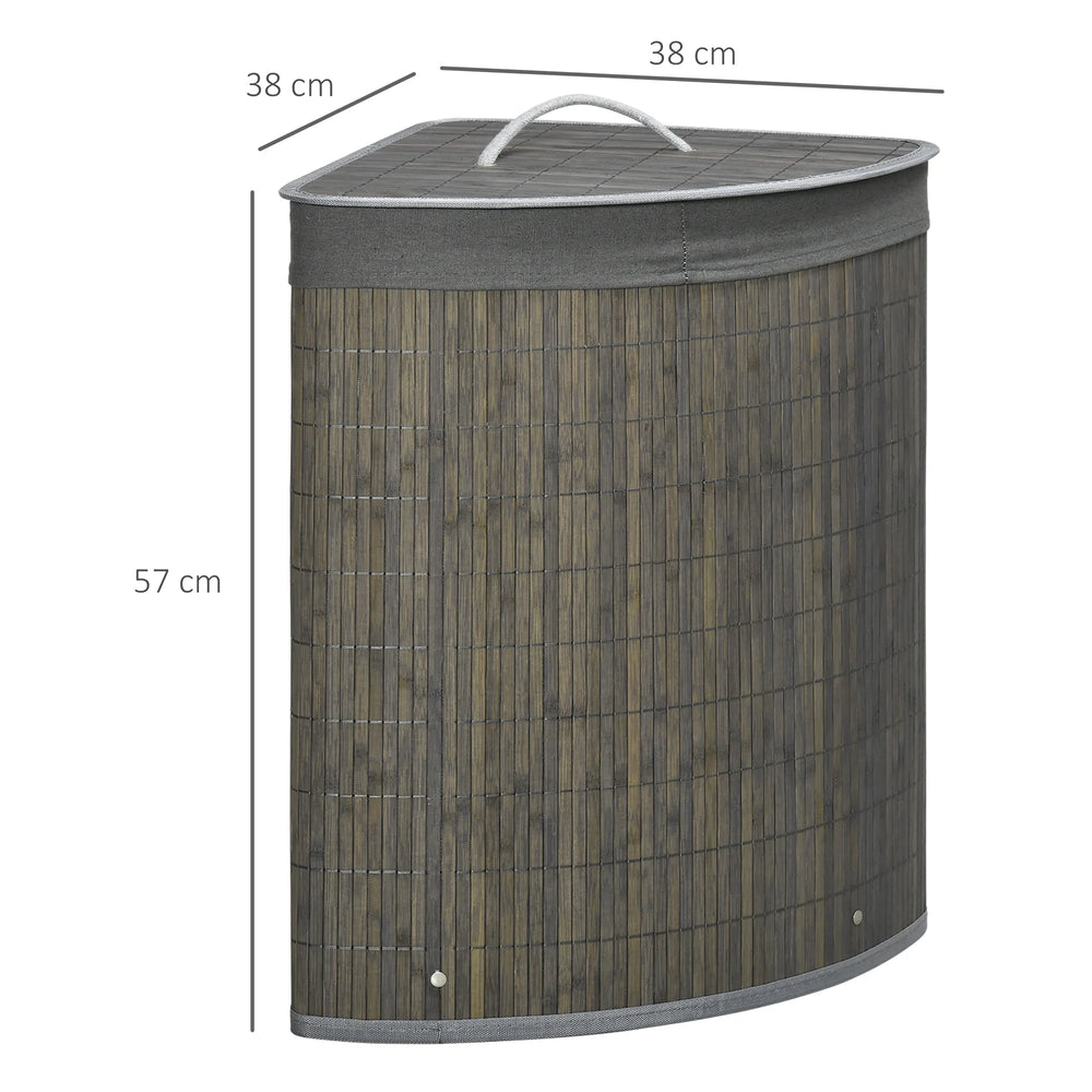 HOMCOM Bamboo Laundry Basket with Lid, 55 Litres Laundry Hamper with Removable Washable Lining, Corner Washing Baskets, 38 x 38 x 57cm, Grey is backordered and will ship as soon as it is back in stock.