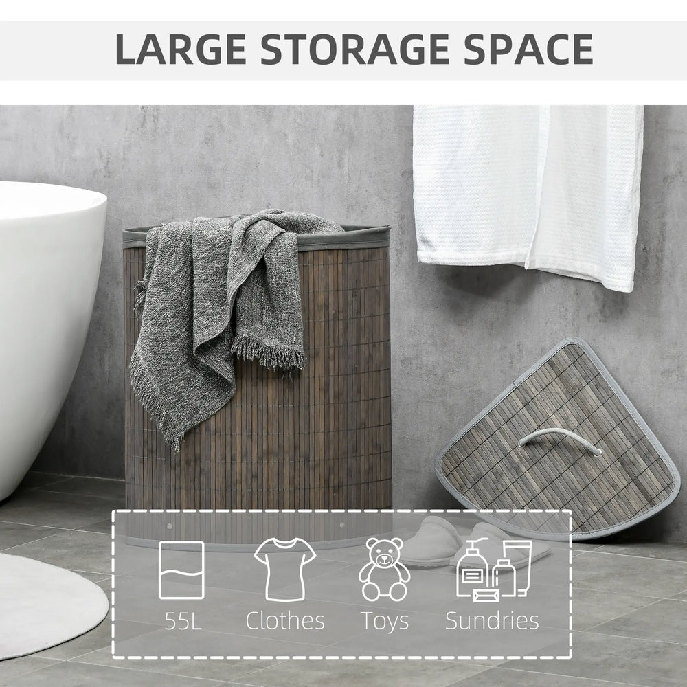 HOMCOM Bamboo Laundry Basket with Lid, 55 Litres Laundry Hamper with Removable Washable Lining, Corner Washing Baskets, 38 x 38 x 57cm, Grey