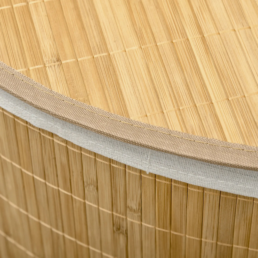 HOMCOM Bamboo Laundry Basket with Lid, 55 Litres Laundry Hamper with Removable Washable Lining, Corner Washing Baskets, 38 x 38 x 57cm, Natural