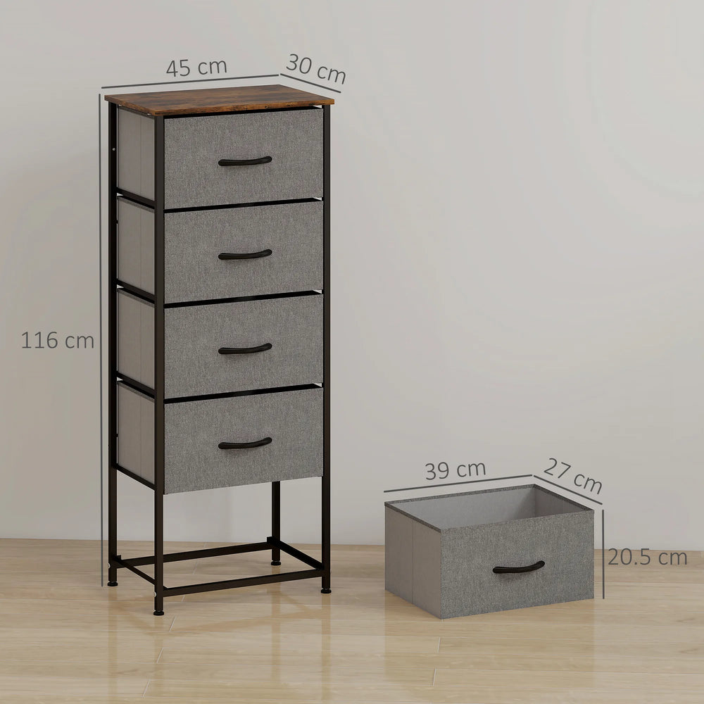HOMCOM Fabric Chest of Drawers, Industrial Bedroom Dresser with 5 Fabric Drawers, Steel Frame and Wooden Top for Nursery, Living Room, Hallway, Rustic Brown and Grey