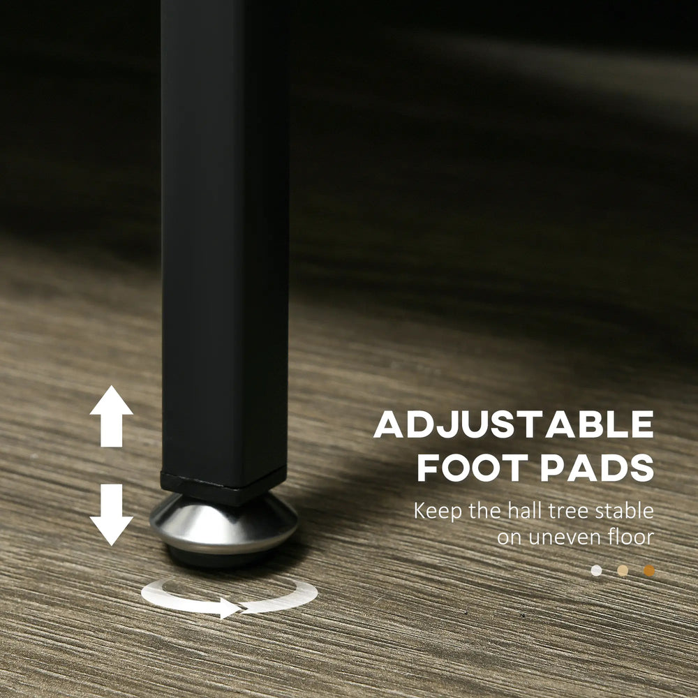 - Steel frame, with adjustable feet: Hall tree has a strong core. Easy to keep the balance on uneven grounds.