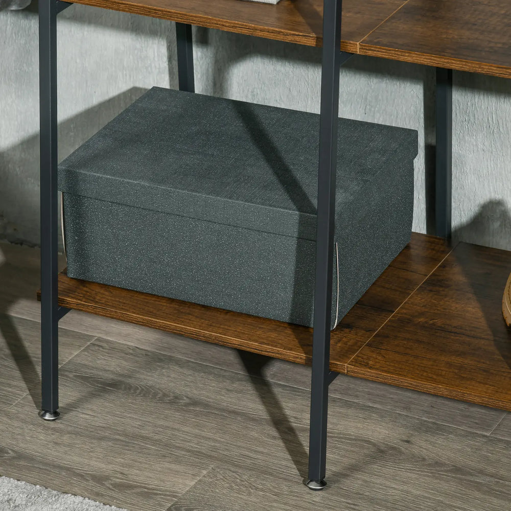 HOMCOM Clothes Rail, Metal Clothes Rack with Shoe Rack, 5 Tier Storage Shelves, 5 Side Hooks, Coat Stand for Bedroom, Living Room, Hallway, Rustic Brown and Black