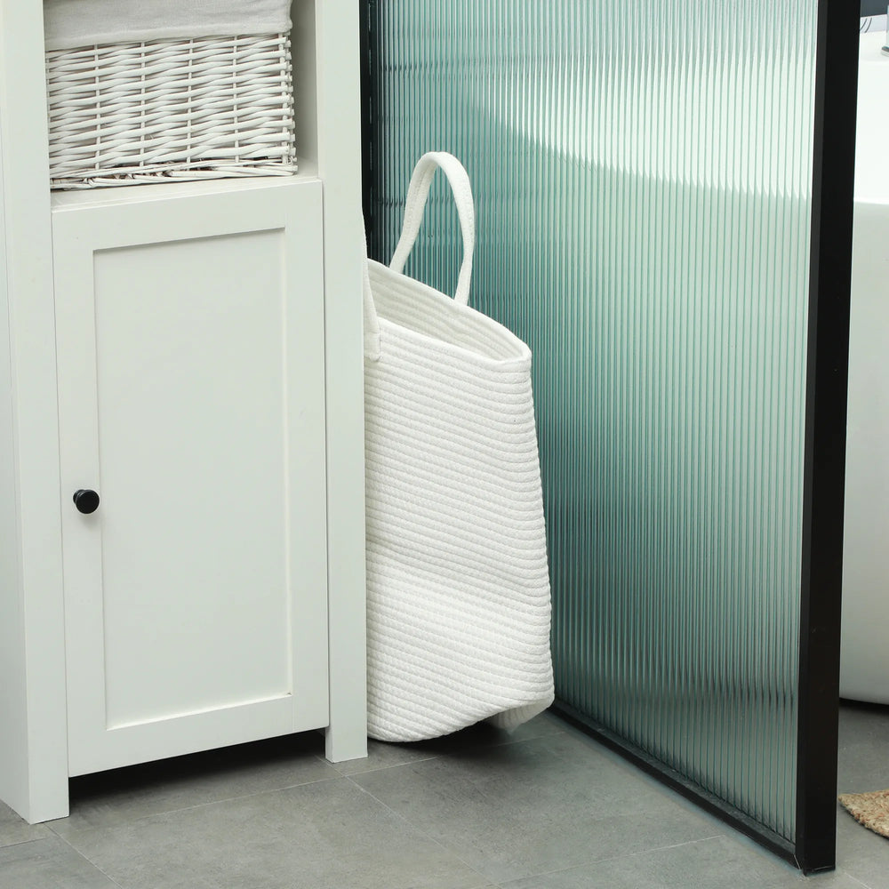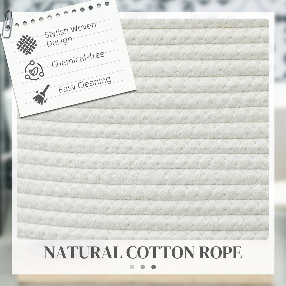 HOMCOM 36L Cotton Rope Laundry Basket, with Handles - Cream White
