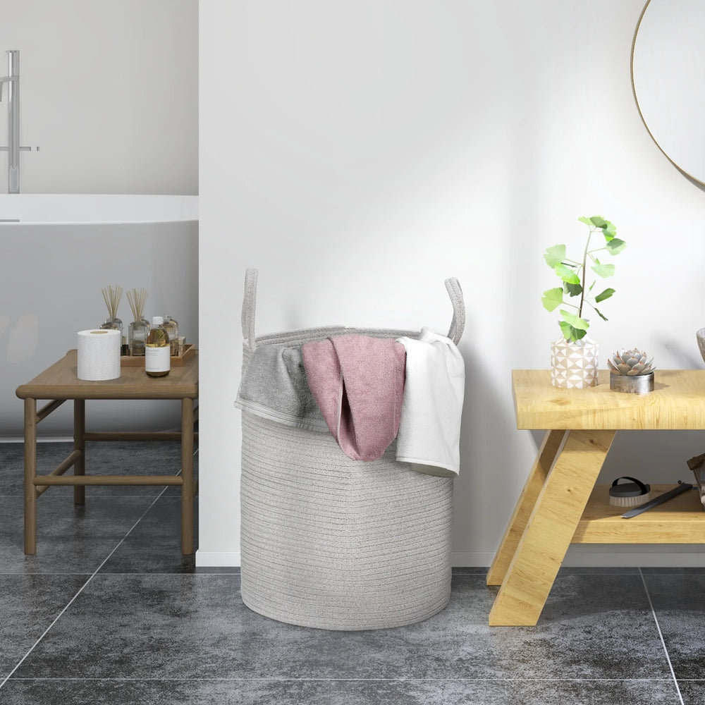 HOMCOM 36L Cotton Rope Laundry Basket, with Handles - Grey