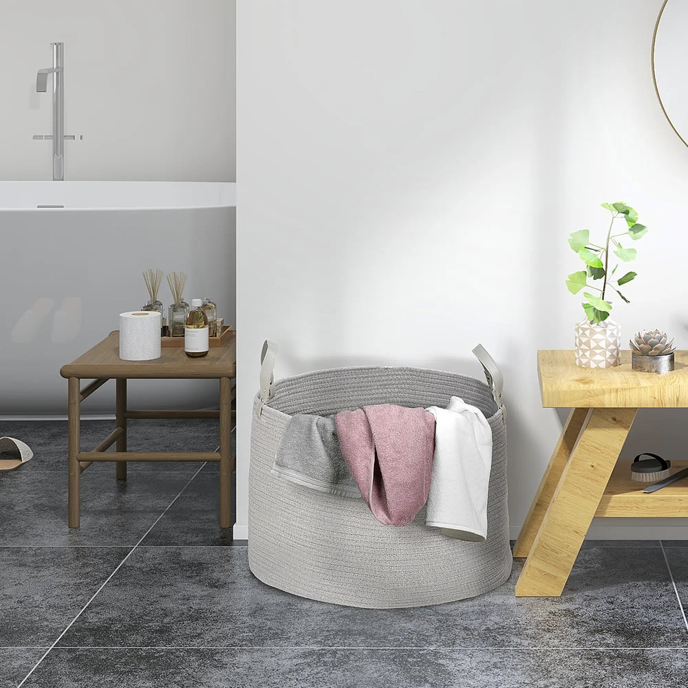 HOMCOM 88L Cotton Rope Laundry Basket, with Handles - Grey