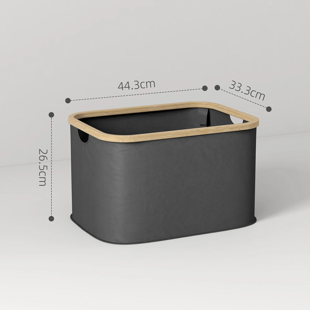 HOMCOM 36L Foldable Laundry Basket, with Bamboo Top - Black