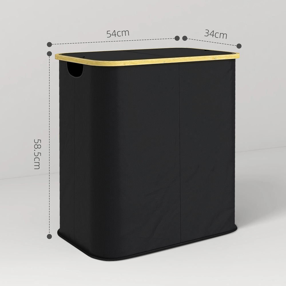 Keep your laundry organised effortlessly with the HOMCOM black laundry basket with lid. Its 80L capacity, split into two 40L sections, allows for easy sorting of clean and dirty clothes. Designed for convenience, this portable, foldable laundry hamper is crafted from non-woven fabric with a chic bamboo frame, making it a stylish addition to any home.