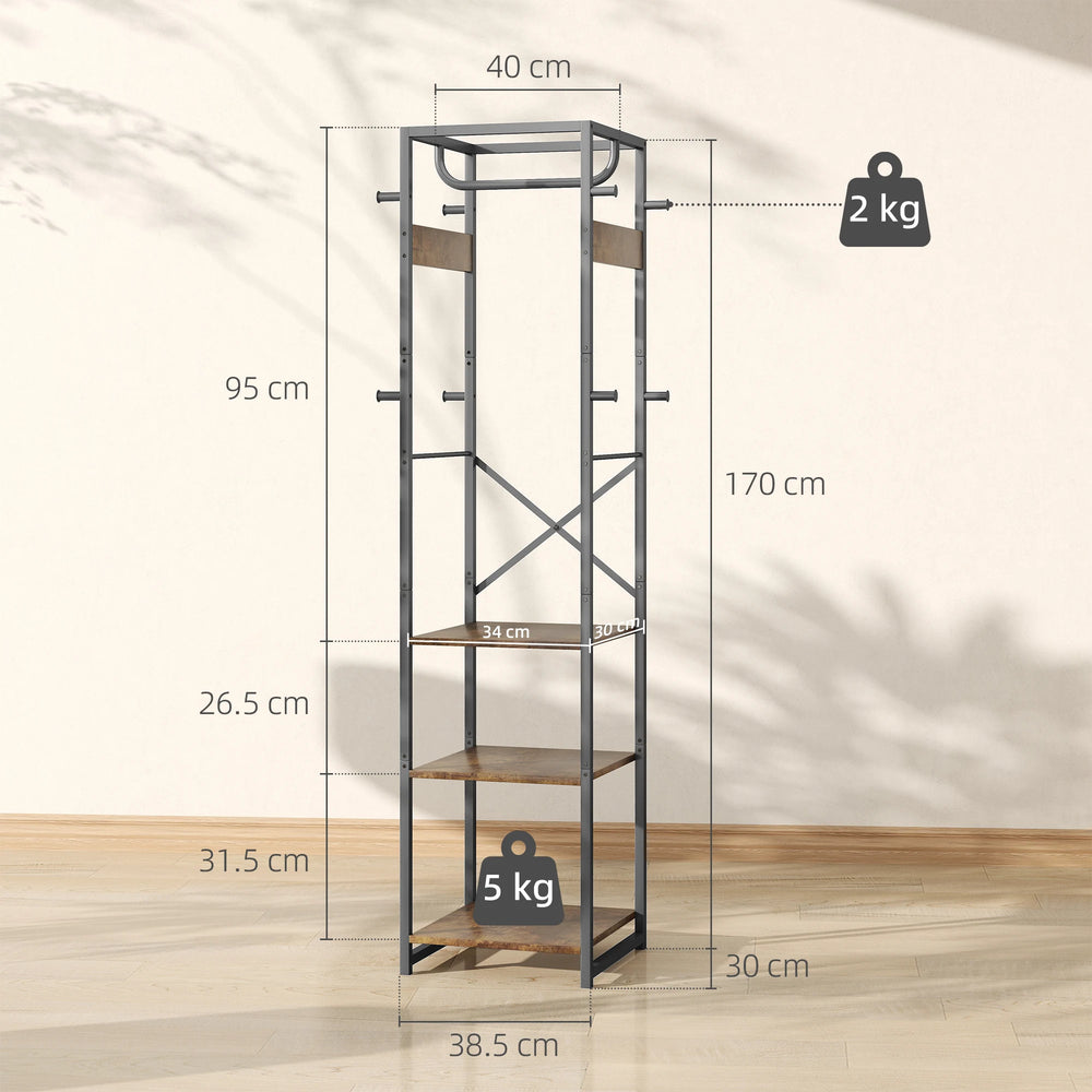 HOMCOM Multi-Storage Clothes Rack - Brown/Black