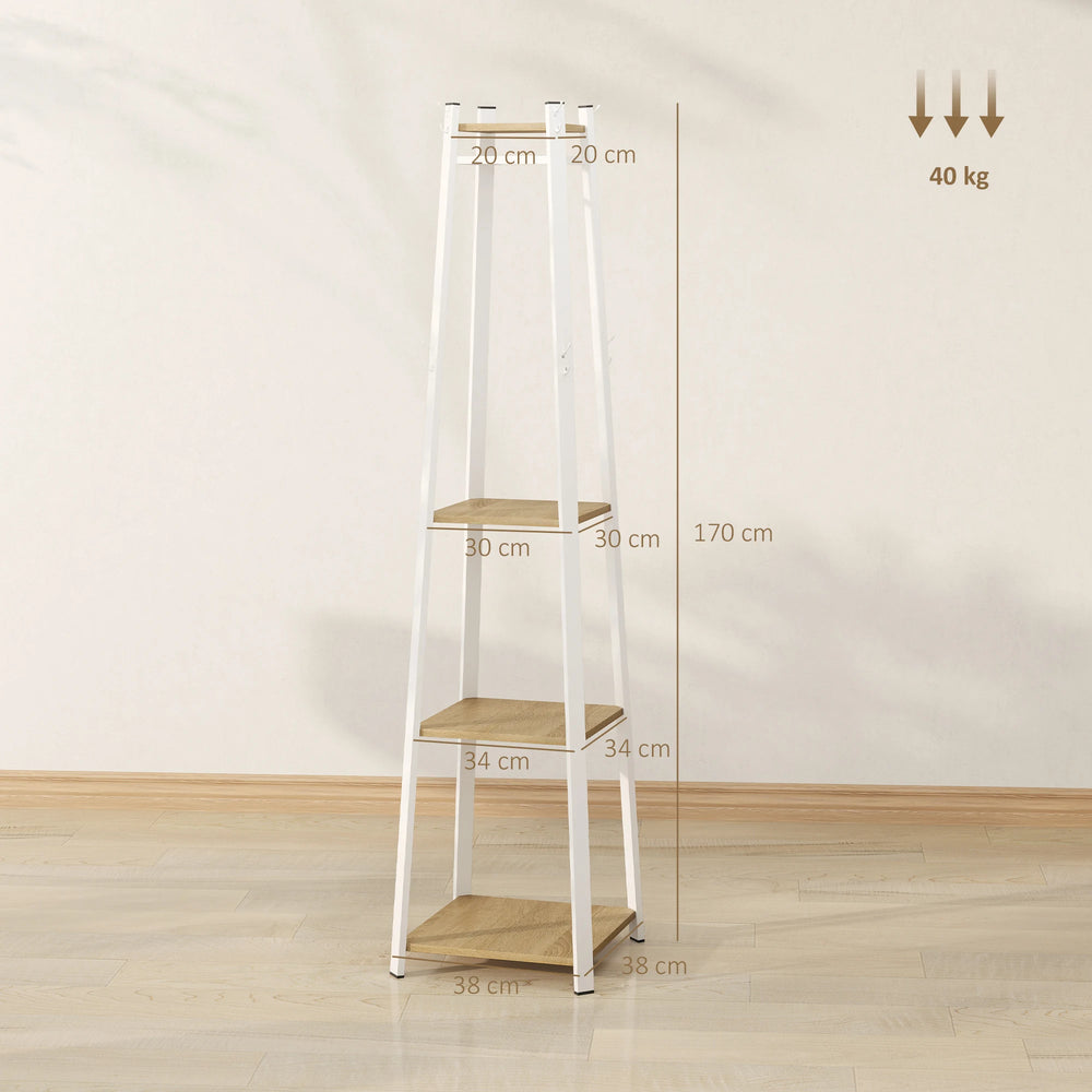 HOMCOM Compact Freestanding Coat Rack - White/Oak