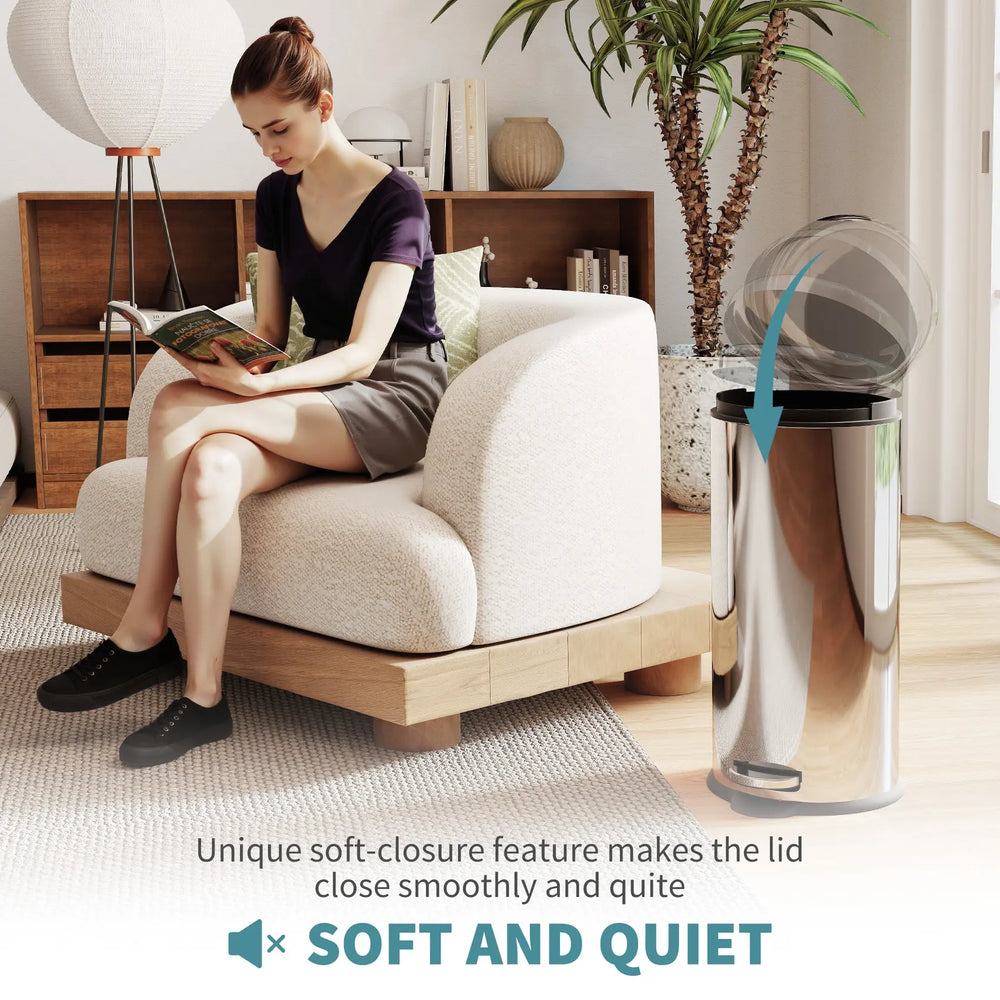 Keep your indoor space effortlessly clean with this pedal bin with lid.Made from 401 stainless steel, it is highly durable, allowing it to stand the wear and tear of everyday hectic life. Fingerprint resistant with a large capacity of 30 liters, this trash can is perfect for family life. The rubbish bin is finished with a removable inner bucket for quick emptying, a soft closure lid and a hard wearing foot pedal, so you dont have to touch the lid to open it, making it extremely hygienic
