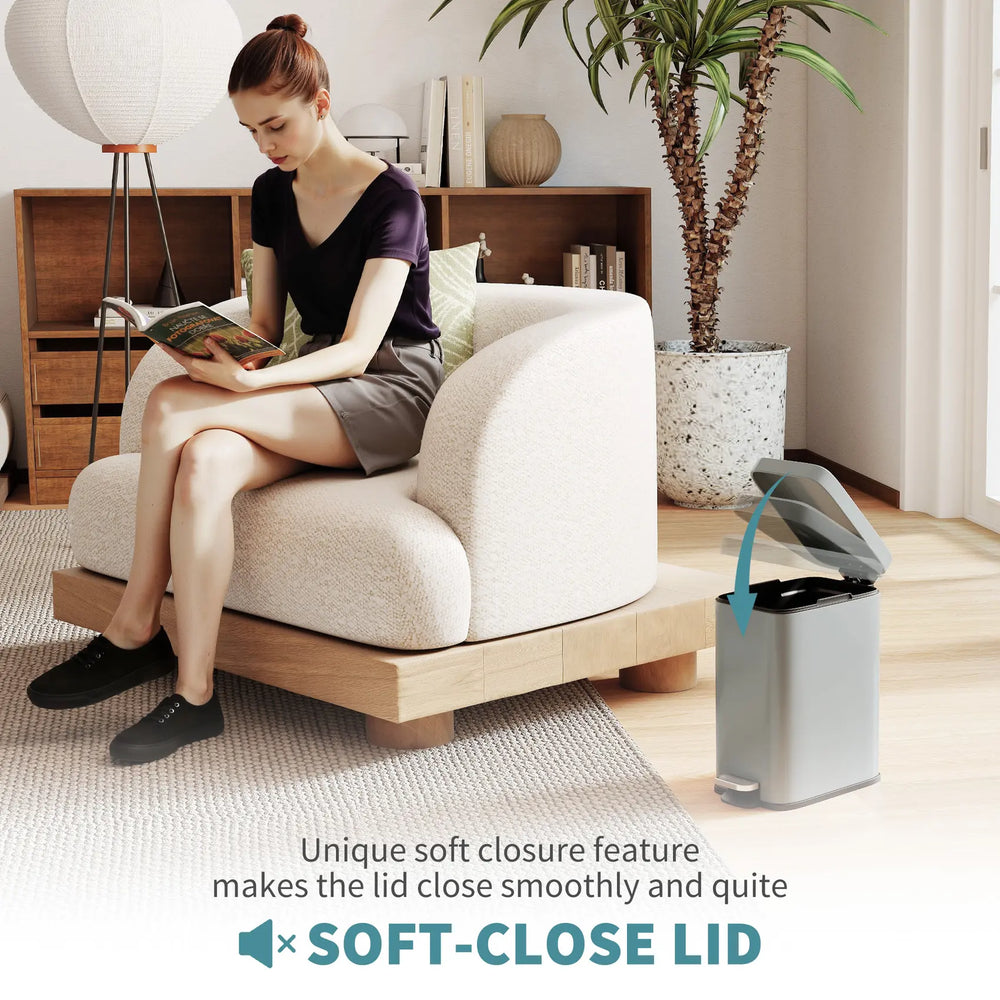HOMCOM 5L Rectangular Compact Bin Steel Body Removable Bucket Quiet-Close Lid w/ Pedal Lid Rubbish Trash Can Home Office Bedroom Bathroom Living Room Garbage Tidy Clean Grey