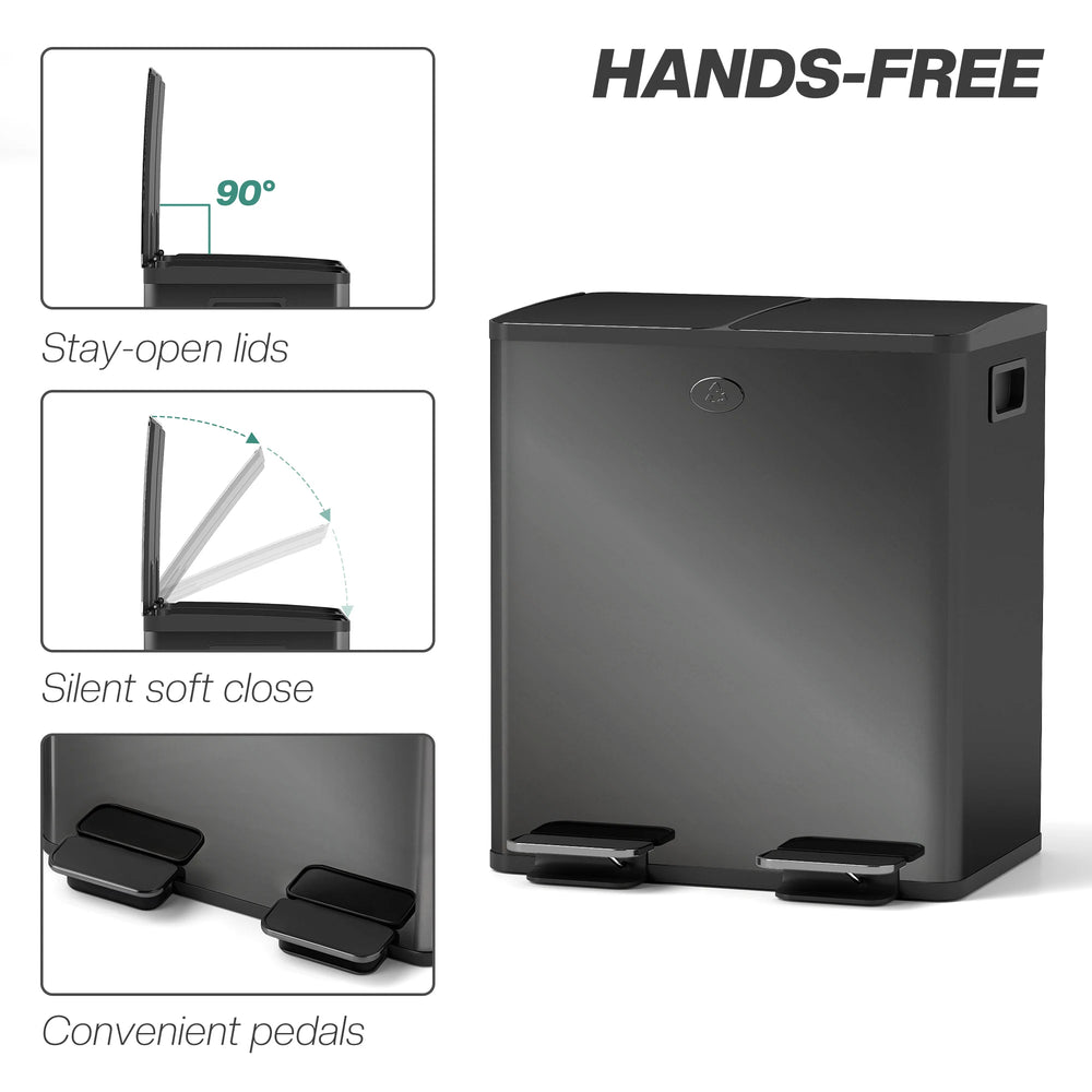 - Fingerprint-resistant stainless steel body: Dual bin is naturally tough, suited for daily use. Avoids fingerprint marks and easily wipes clean for hygiene. Sleek and polished design looks great everywhere.