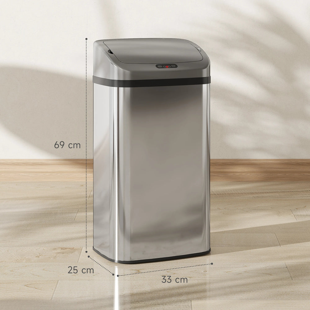 HOMCOM 48L Stainless Steel Sensor Bin - Silver-Tone
