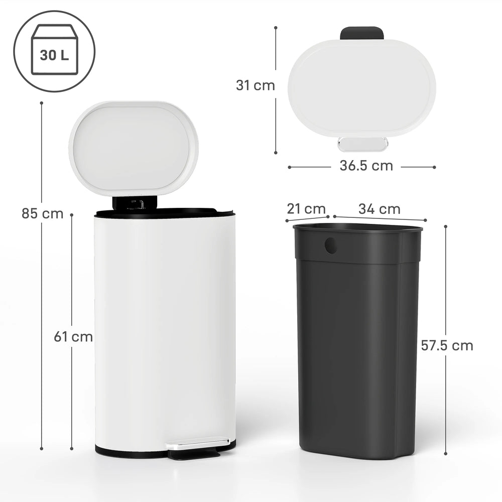 - 30L capacity: Pedal bin provides plenty of room for waste - spacious enough for family use. The slim and compact design means it tucks neatly into small spaces.