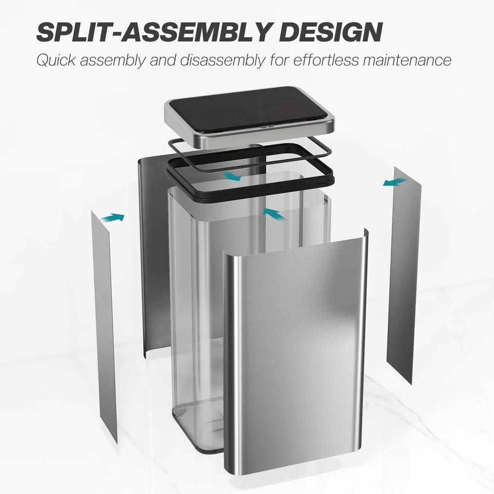 Struggling with messy hands during food prep, leaving smudges on your bin? Those hard-to-reach dust spots only add to the frustration. The HOMCOM sensor bin offers a touch-free solution, opening instantly with a wave. Its detachable construction makes assembly and disassembly easy, while fingerprint-resistant stainless steel keeps your kitchen bin looking immaculate, restoring ease and tidiness to your space.