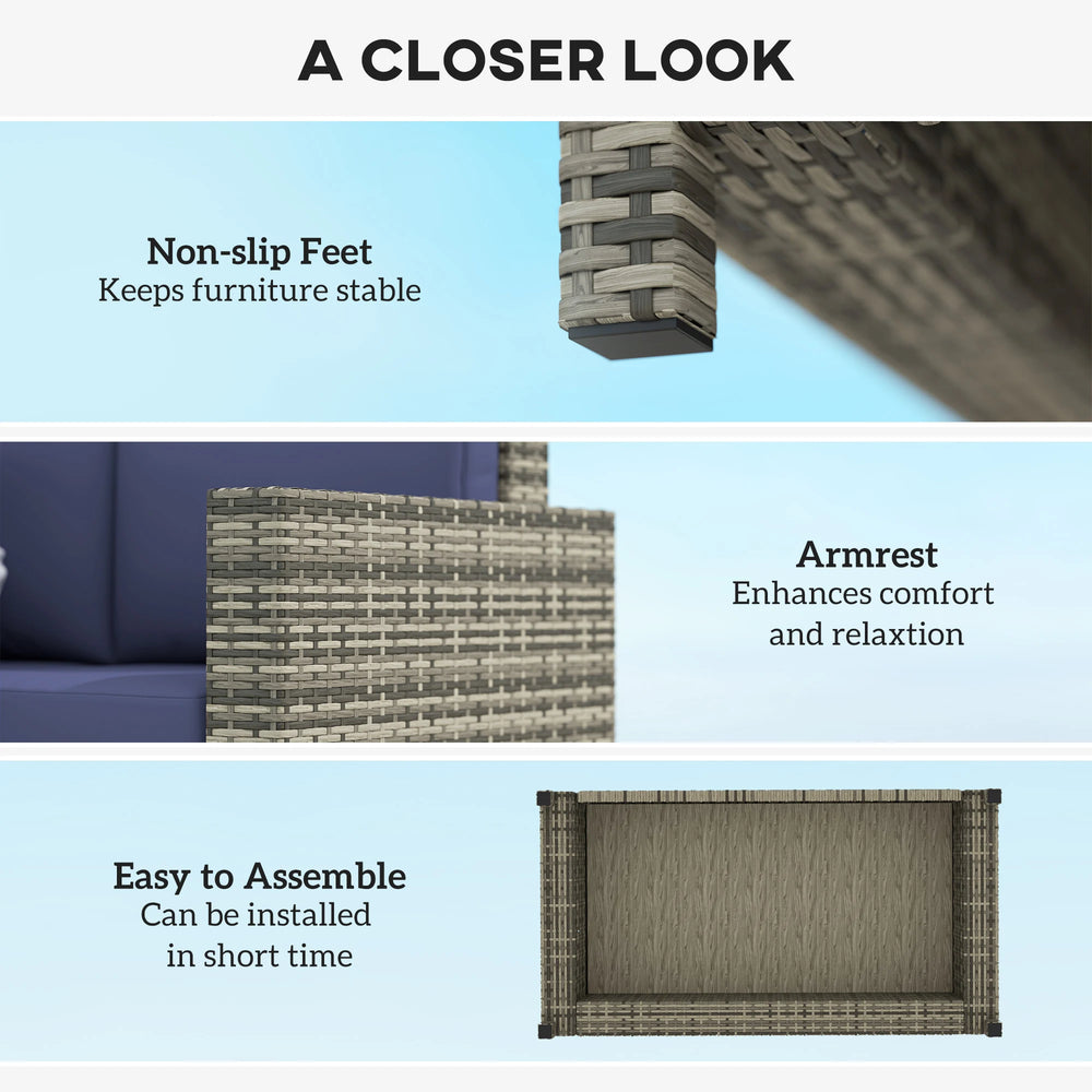 Outsunny Rattan Sofa, 2 Seater Garden Furniture with Soft Padded Cushion and Armrests, Wicker Garden Loveseat for Patio, Navy Blue