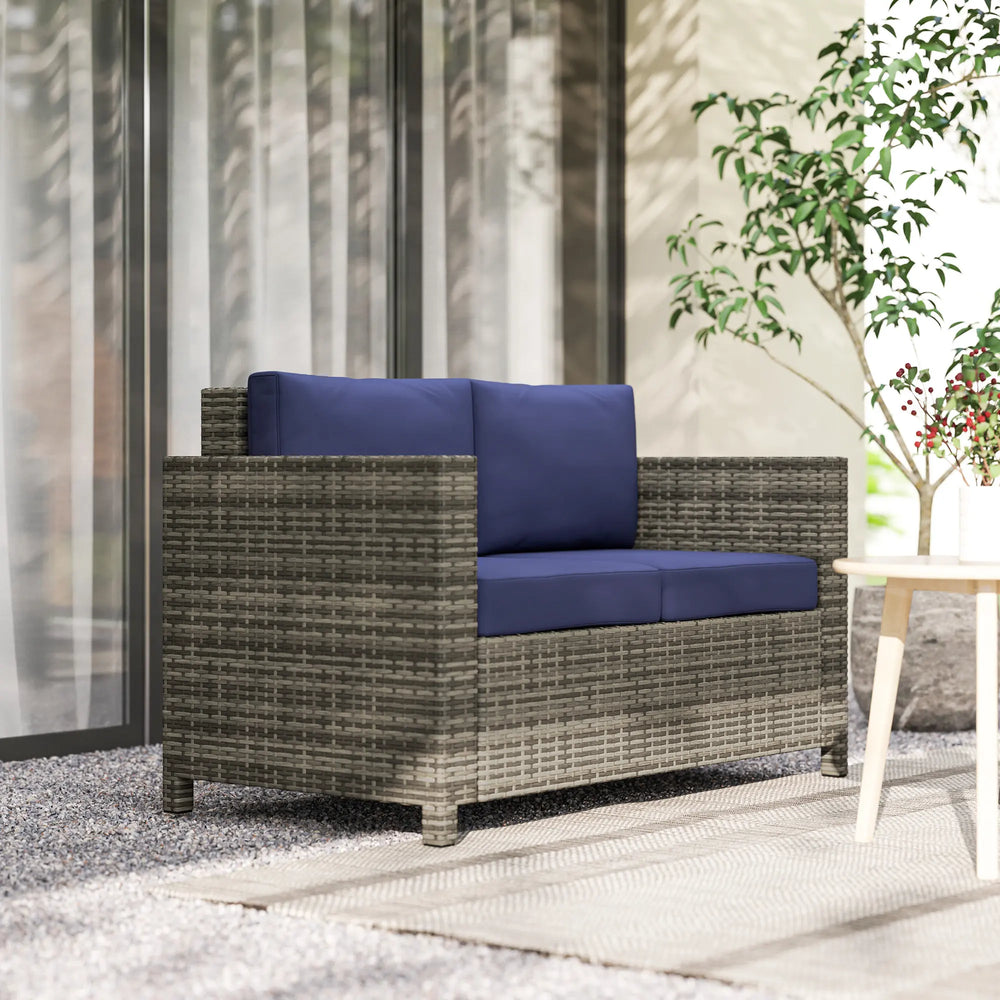 Outsunny Rattan Sofa, 2 Seater Garden Furniture with Soft Padded Cushion and Armrests, Wicker Garden Loveseat for Patio, Navy Blue is backordered and will ship as soon as it is back in stock.