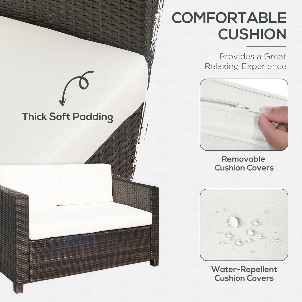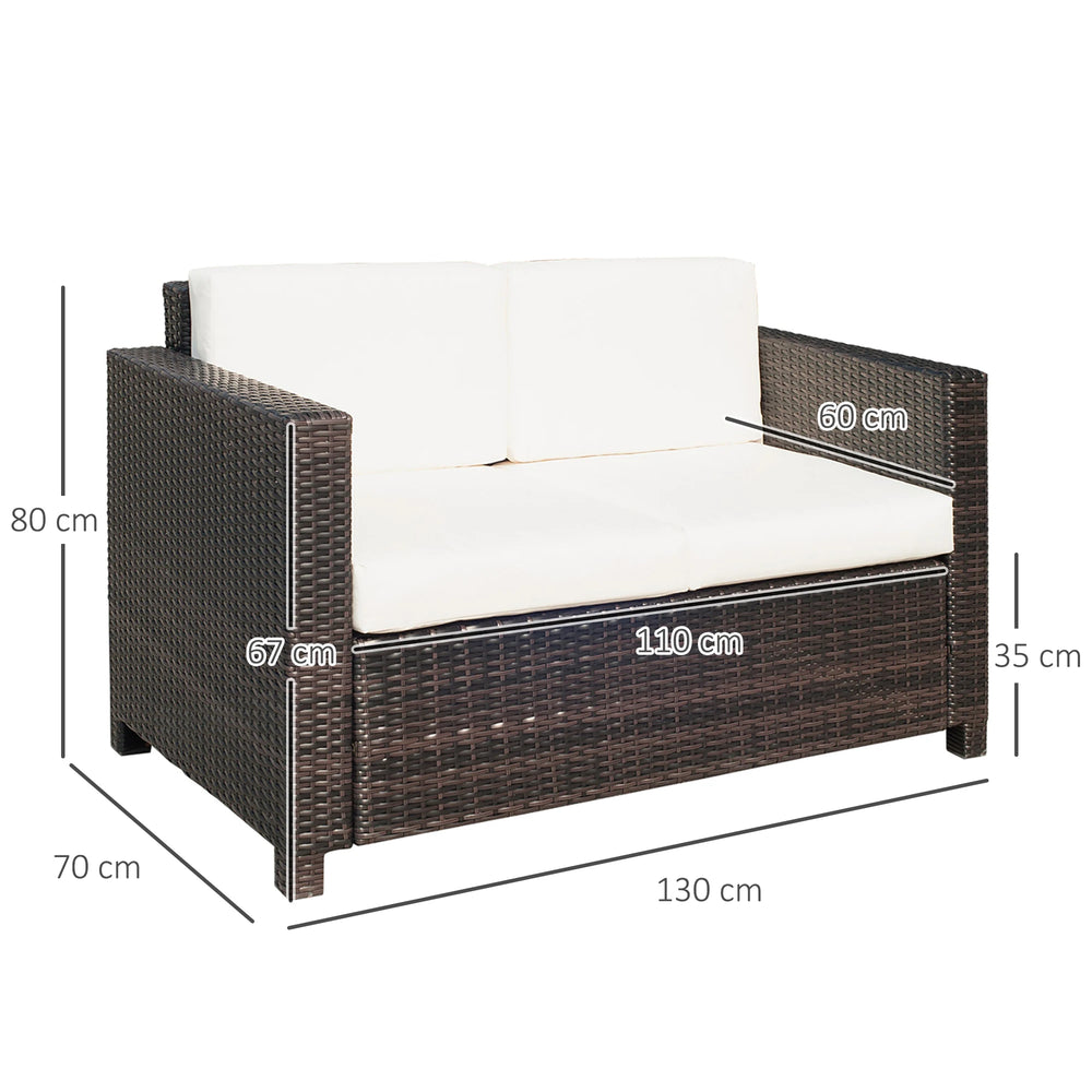 Outsunny Rattan Sofa, 2 Seater Garden Furniture with Soft Padded Cushion and Armrests, Wicker Garden Loveseat for Patio, Mixed Brown
