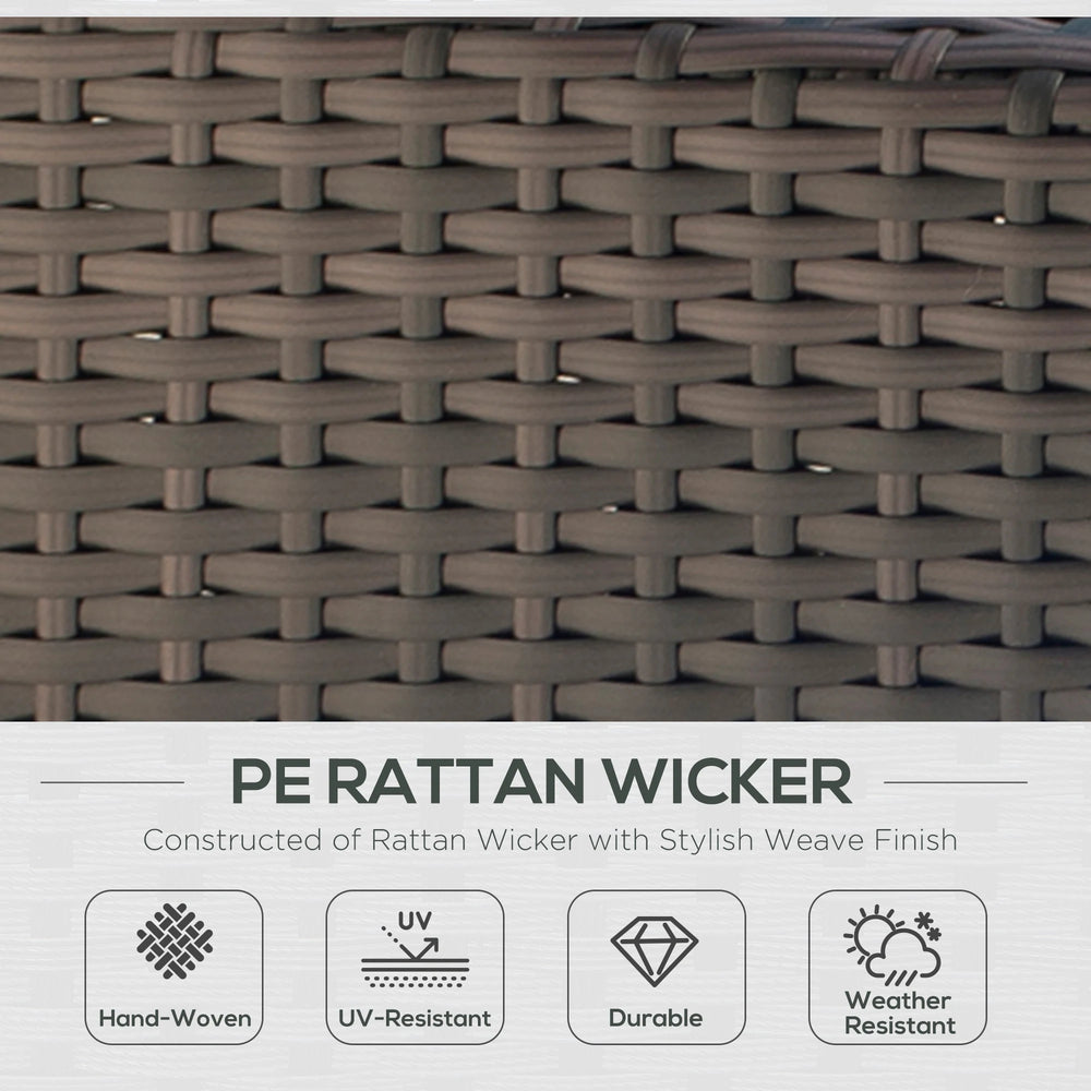 Brighten your garden with the Outsunny rattan loveseat. Made of steel frame to prevent rust and damage outdoors, wrapped in rattan for easy cleaning and is a mainstay in your garden furniture. Come with thick padded and plush cushions, as well as being water-resistant and having washable covers, with a high back and armrests for plenty of support, this outdoor couch is a great way for two persons to sit back and relax in the sun.