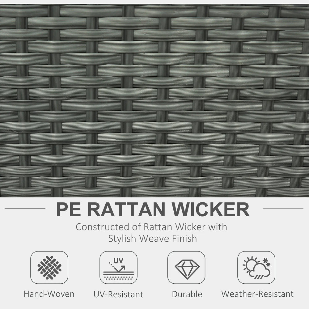 Outsunny six-piece rattan dining set is designed for those who cherish the fusion of comfort and aesthetics. Crafted with a robust powder-coated steel frame and elegantly wrapped in weather-resistant plastic wicker, this set promises durability against the elements. The reclining armchairs is adjustable, paired with plush cushions, offering unparalleled comfort for leisurely afternoons. Transform your garden into a haven of relaxation.