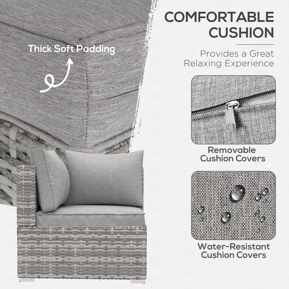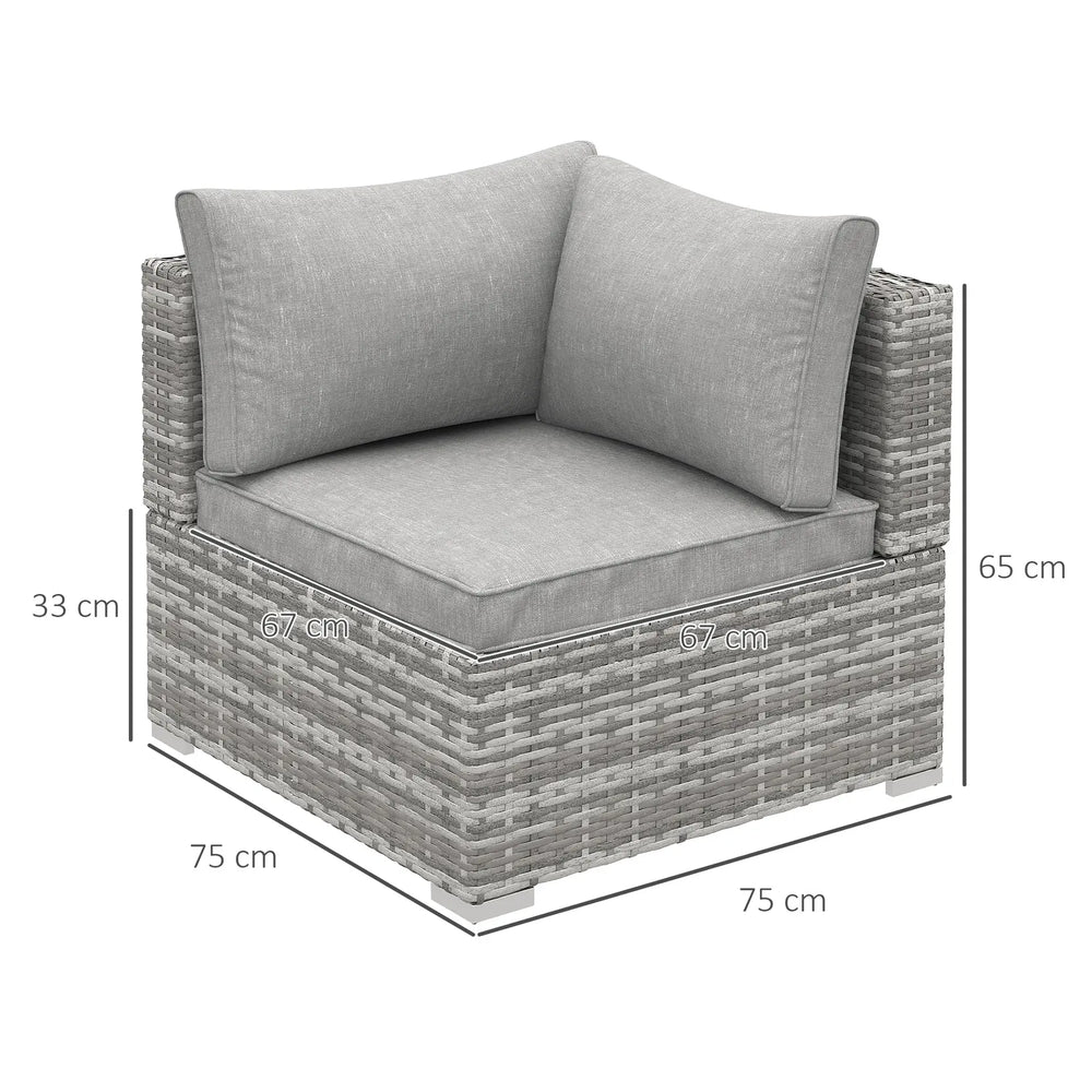 Outsunny Outdoor PE Rattan Corner Sofa, Garden Wicker Furniture Single Sofa Chair w/ Cushions, Light Grey