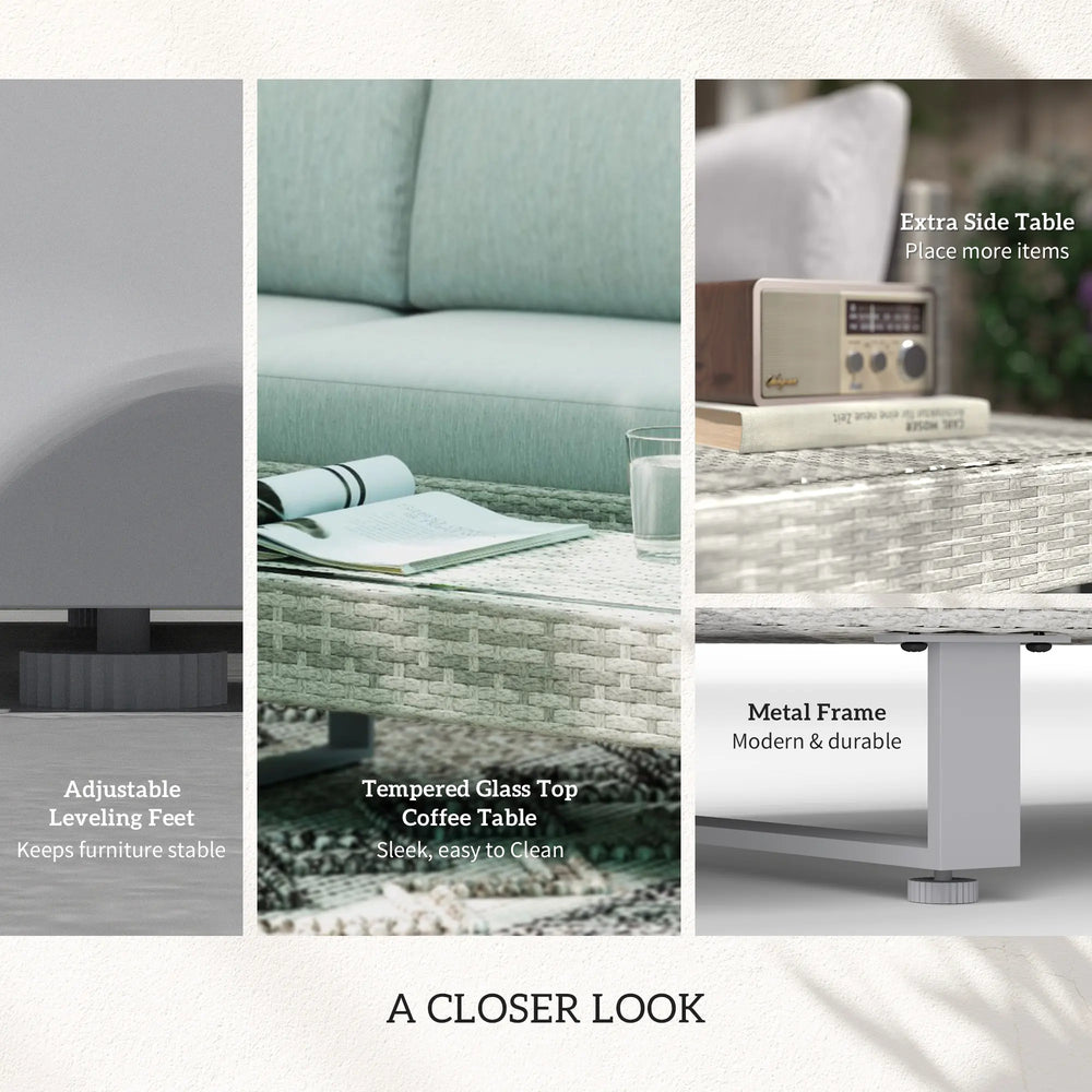Outsunny Three-Piece Corner Rattan Set, with Glass Tables