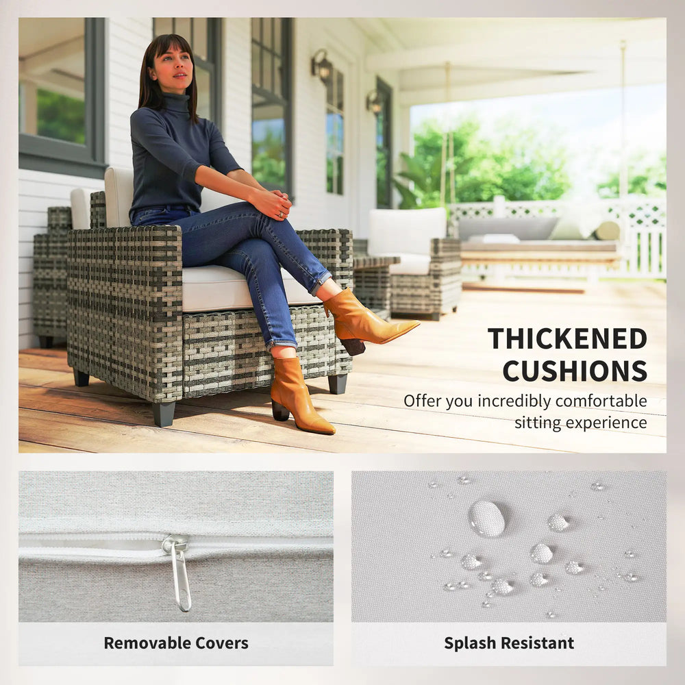 - Thick seat and back cushions: Sit comfortably on this outdoor furniture set. Removable and washable covers for freshness.