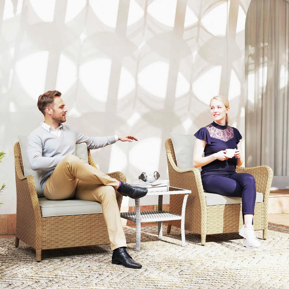 - Set of two rattan chairs: Relax outdoors and share the moment with company. Use remotely or pair with your existing balcony or garden furniture set.