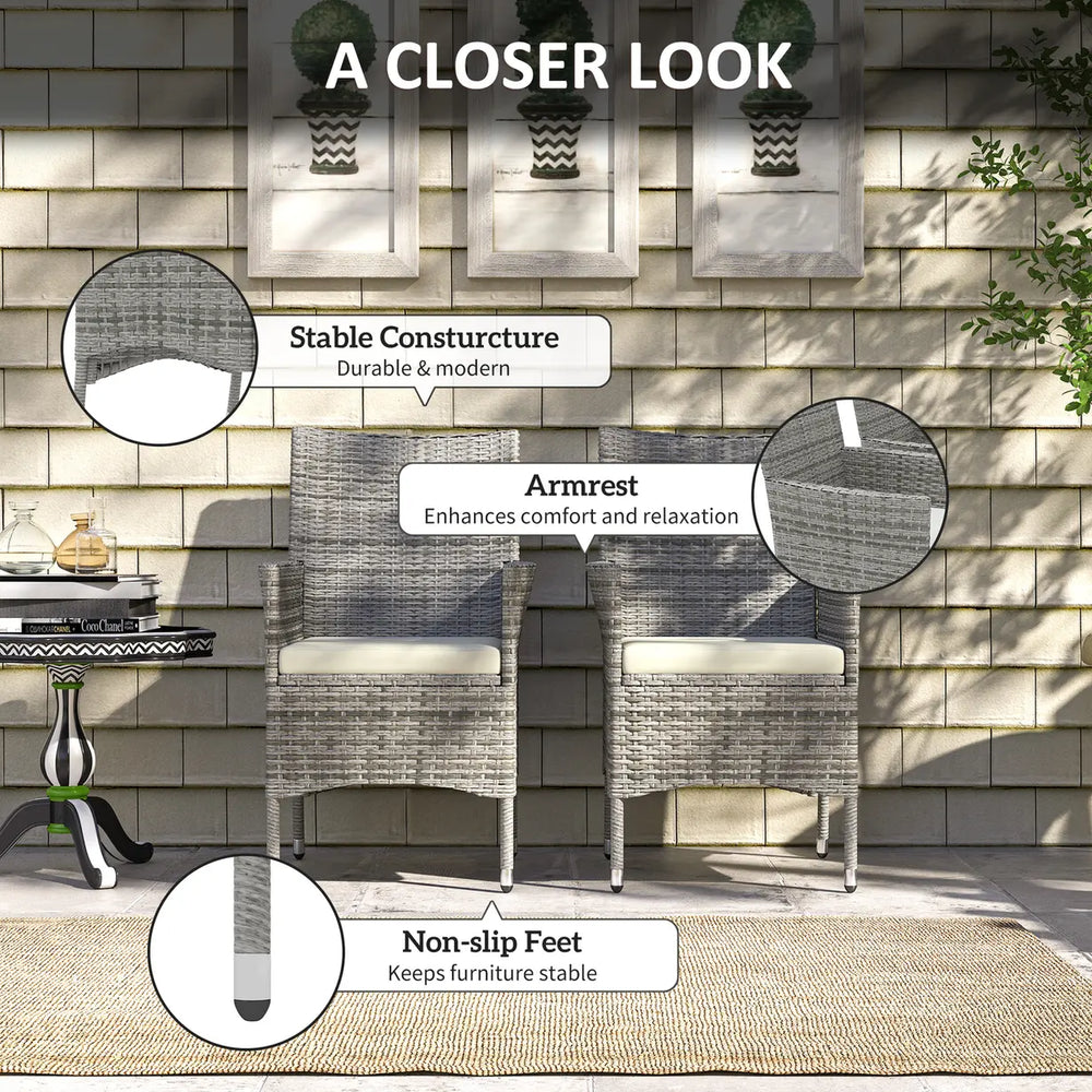 Outsunny 2 Pieces Rattan Garden Chairs Dining Chair Set with Cushion, Mixed Grey