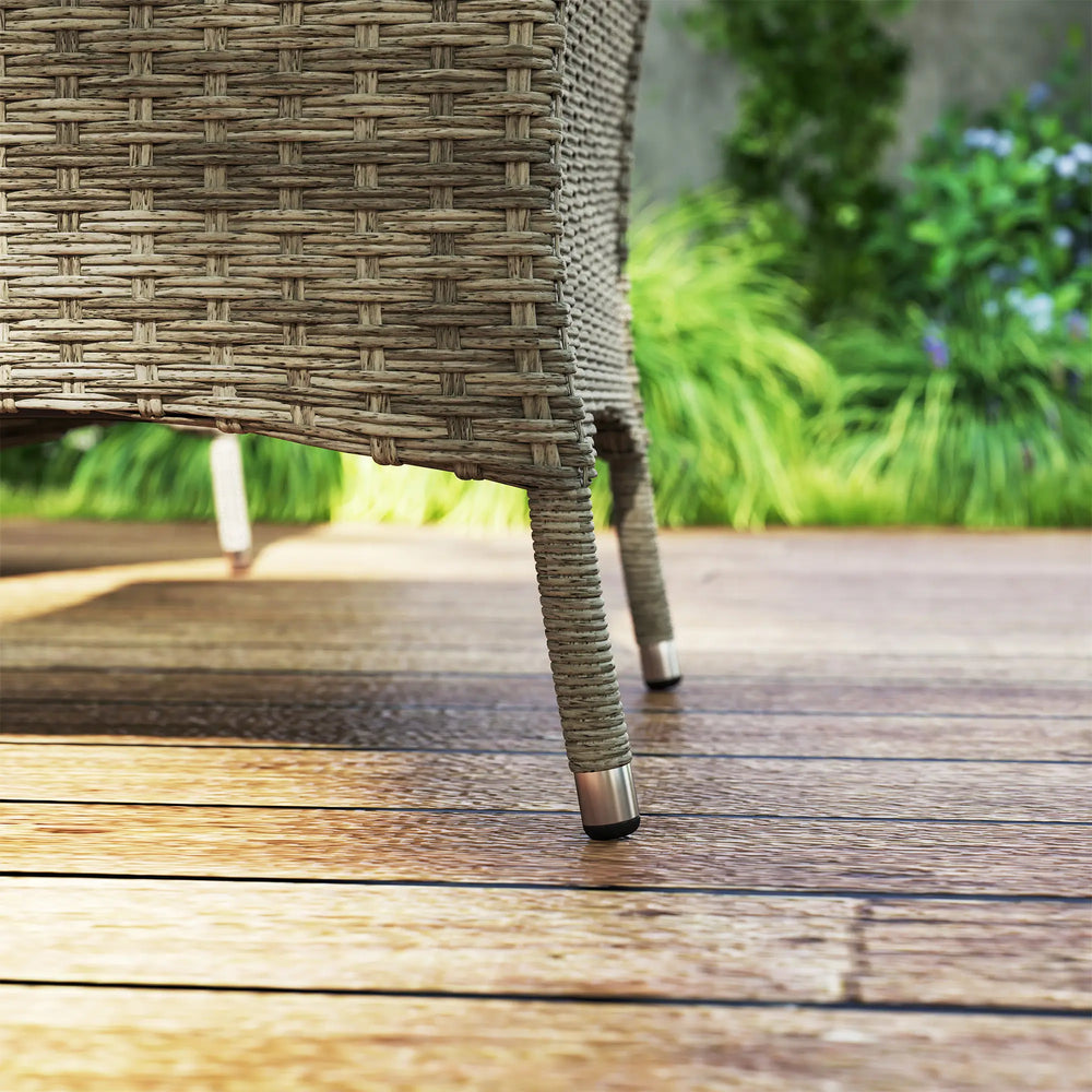 - Aluminium frames, wrapped in rattan: The outdoor table and chairs have powder-coated metal for a strong core, with protective and stylish all weather double-strand half-round PE rattan.