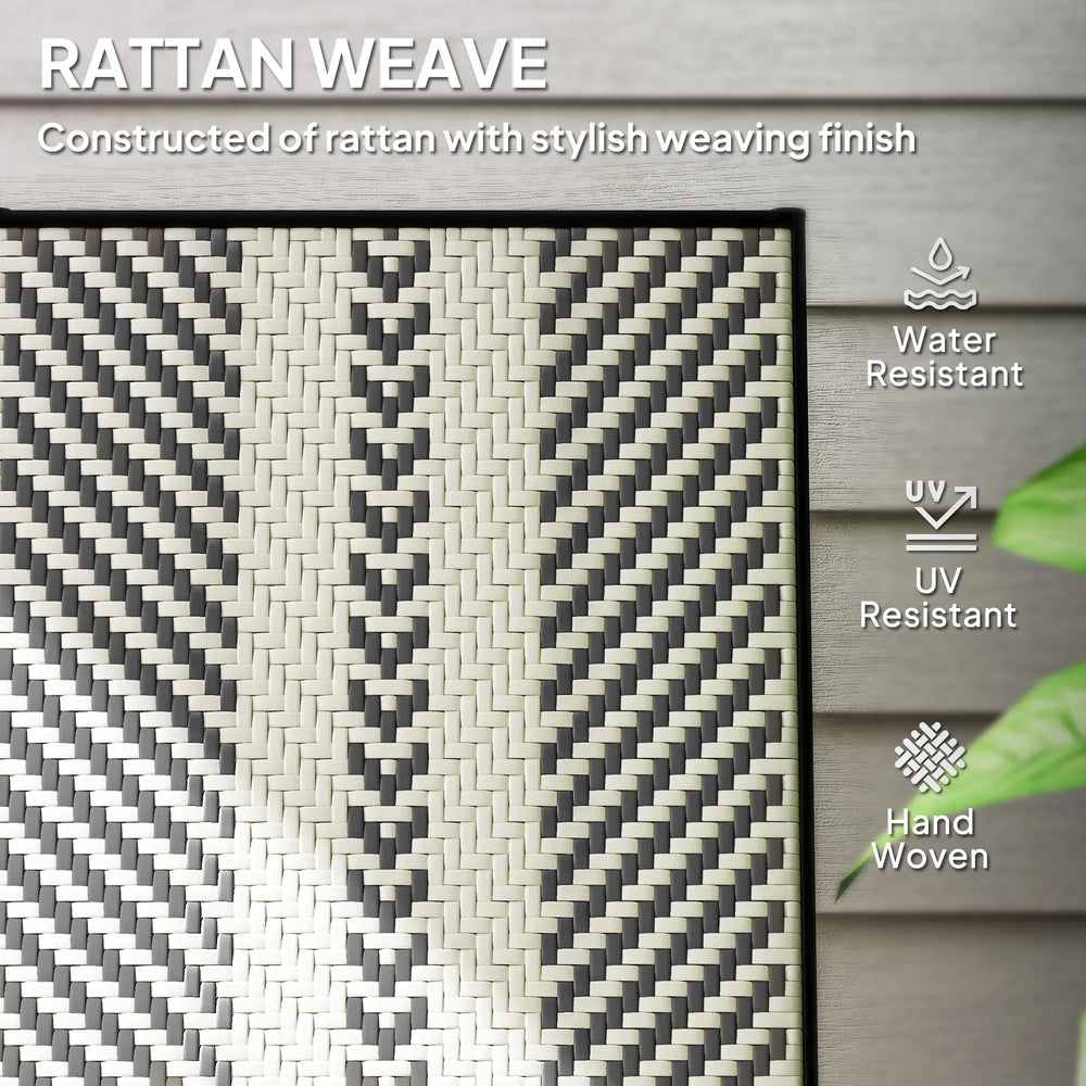 - Rattan seats: Handwoven plastic wicker rattan for a stylish garden look. Robust and suitable for outdoor use. High back and arms on chair for support.