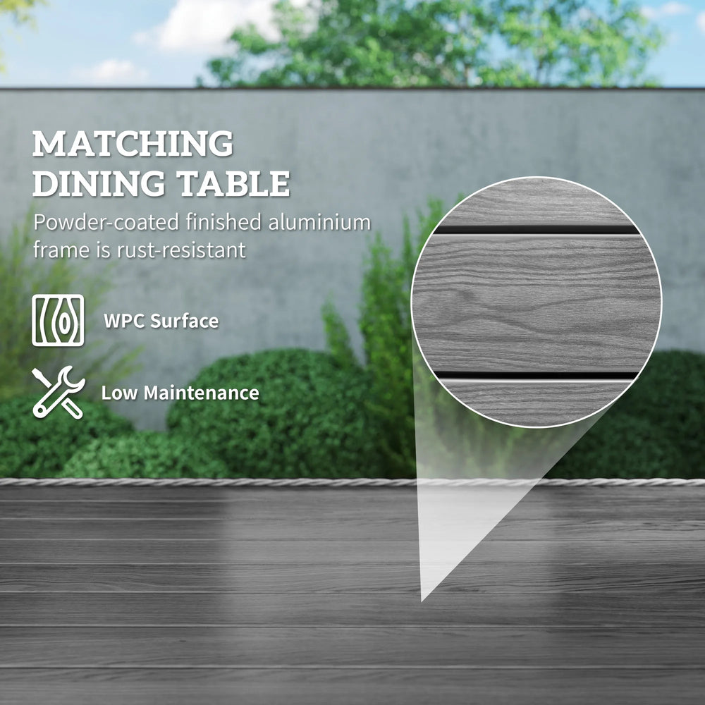 Outsunny Rattan Dining Set with Seat and Back Cushions, 6 Seater Garden Furniture Set with Aluminium Frame, 6 Chairs, WPC Top Rectangle Table, Conservatory Wicker Patio Furniture, Grey