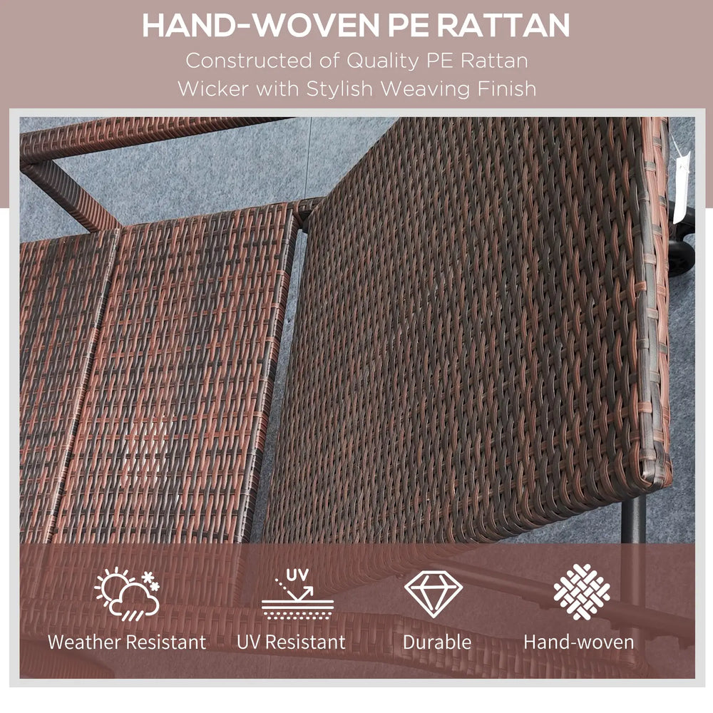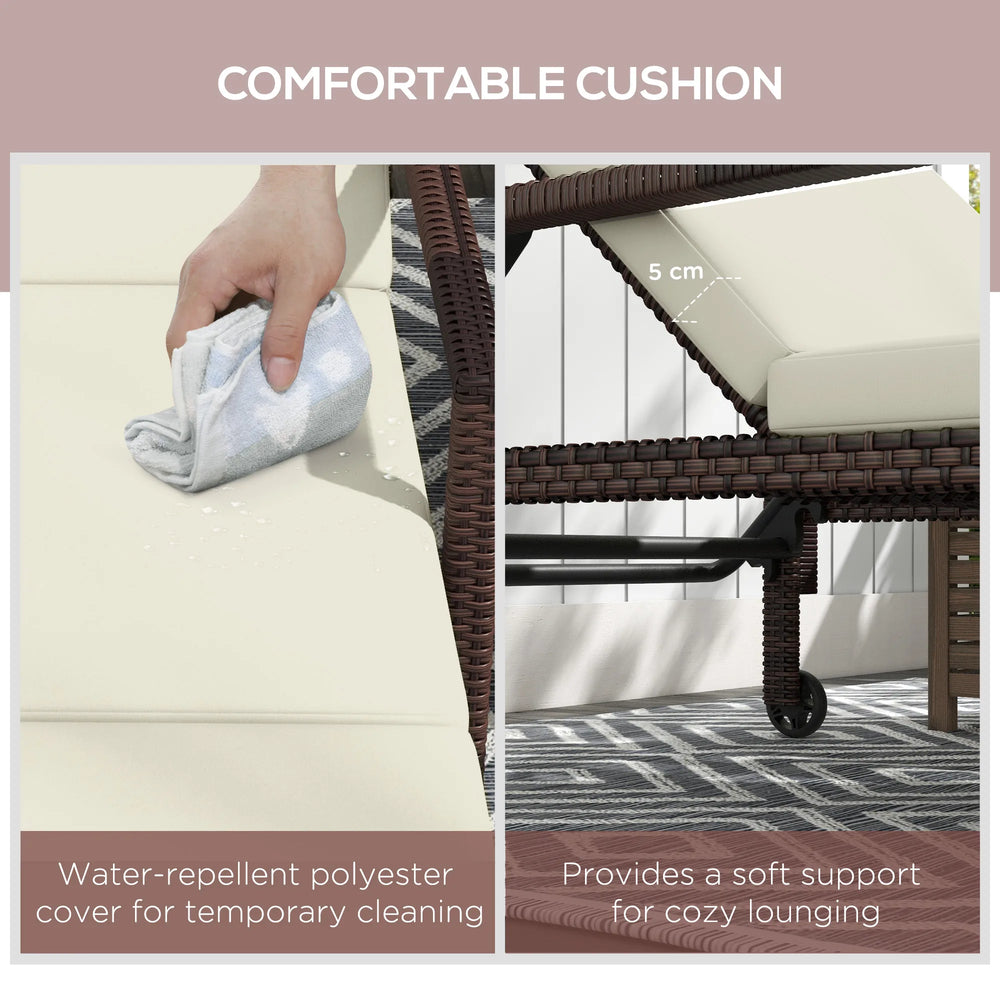 Outsunny Outdoor Sun Lounger, Rattan Wicker Chaise Recliner with 5-Level Adjustable Backrest and 2 Wheels