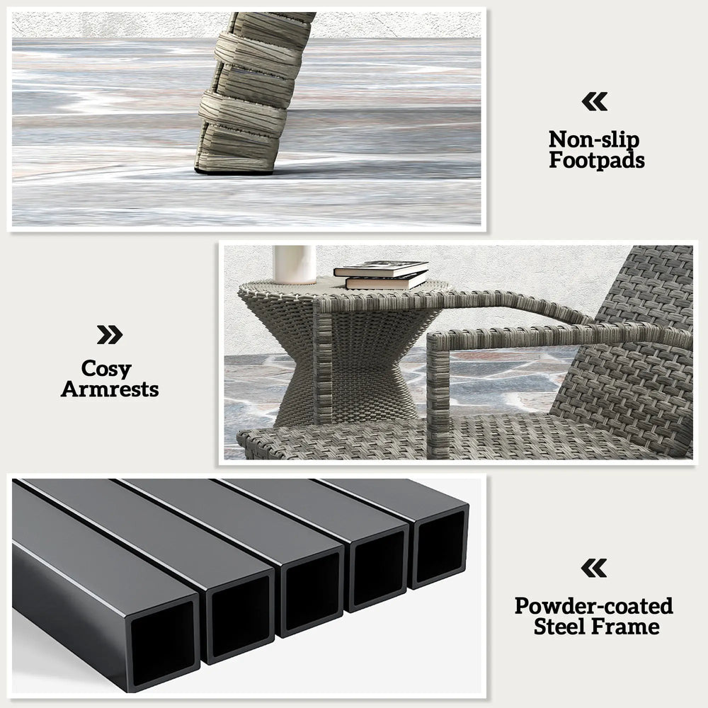 Outsunny Reclining Rattan Lounger, with Extending Footrest - Grey