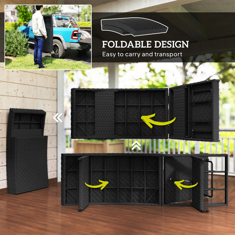 Outsunny Outdoor PE Rattan Sun Lounger, Folding Wicker Garden Lounger Recliner with 4-Level Adjustable Backrest, Rolling Sunbed Lounge Chair with Wheels, Non-Slip Legs for Balcony, Beach, Black