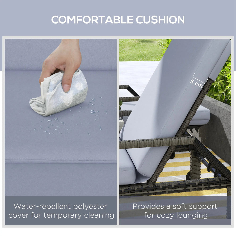Outsunny Outdoor PE Rattan Sun Lounger Set of 2, Wicker Chaise Recliner Garden Chair with 5-Level Adjustable Backrest and 2 Wheels, Dark Grey