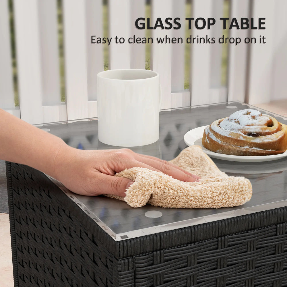 Rock the day away with this Outsunny three-piece garden bistro set. Comes with two rocking chairs and a matching glass-top table. The powder coated steel frames offer a strong core, wrapped in tough and protective plastic wicker - a stylish rattan design, looks great in your garden. The chairs come with a rocking base, to sway forwards and backwards gently, at your control - a total relaxation balcony table and chairs set!