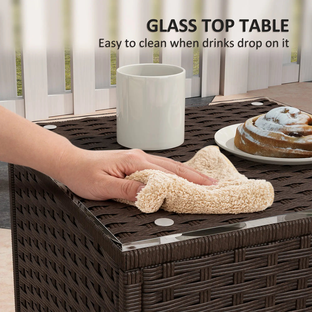 Rock the day away with this Outsunny three-piece garden bistro set. Comes with two rocking chairs and a matching glass-top table. The powder coated steel frames offer a strong core, wrapped in tough and protective plastic wicker - a stylish rattan design, looks great in your garden. The chairs come with a rocking base, to sway forwards and backwards gently, at your control - a total relaxation balcony table and chairs set!