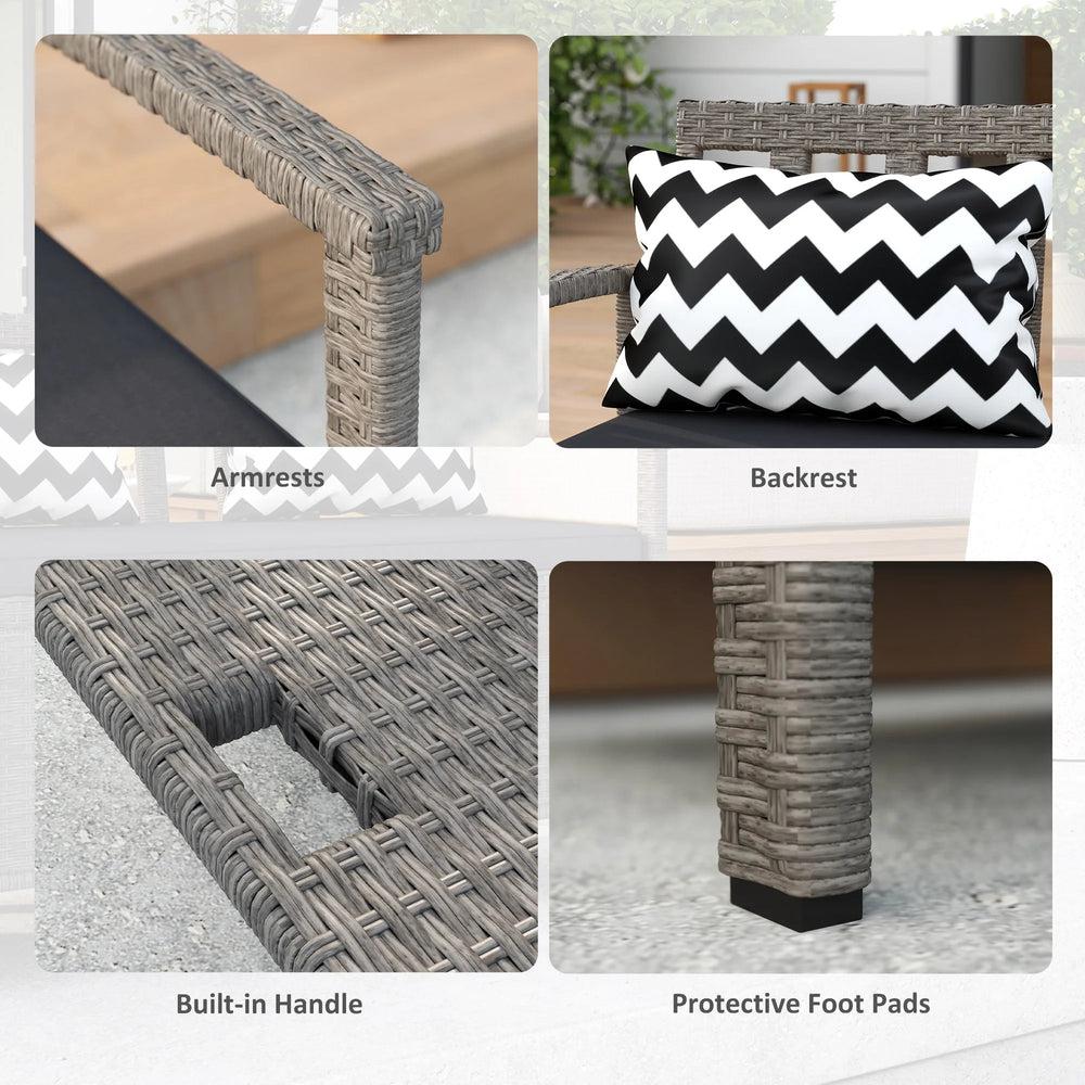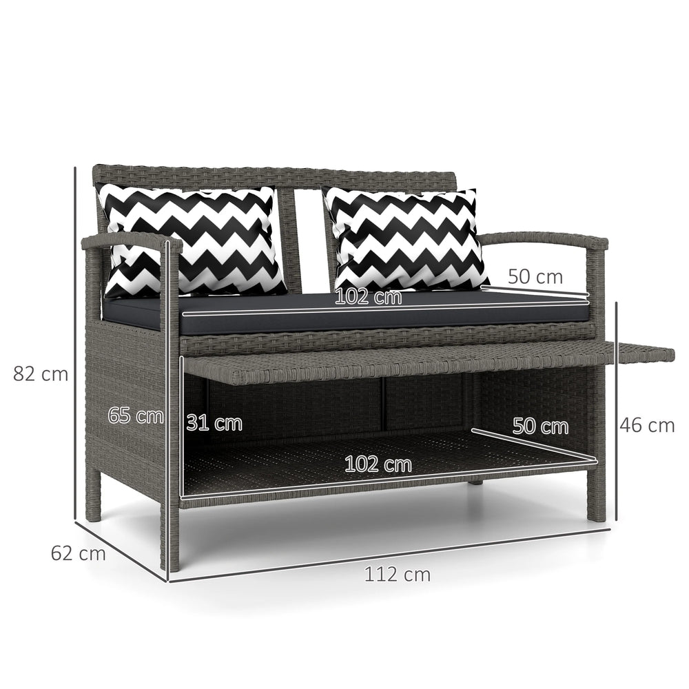 Outsunny 160L Storage Two-Seater Rattan Bench - Grey