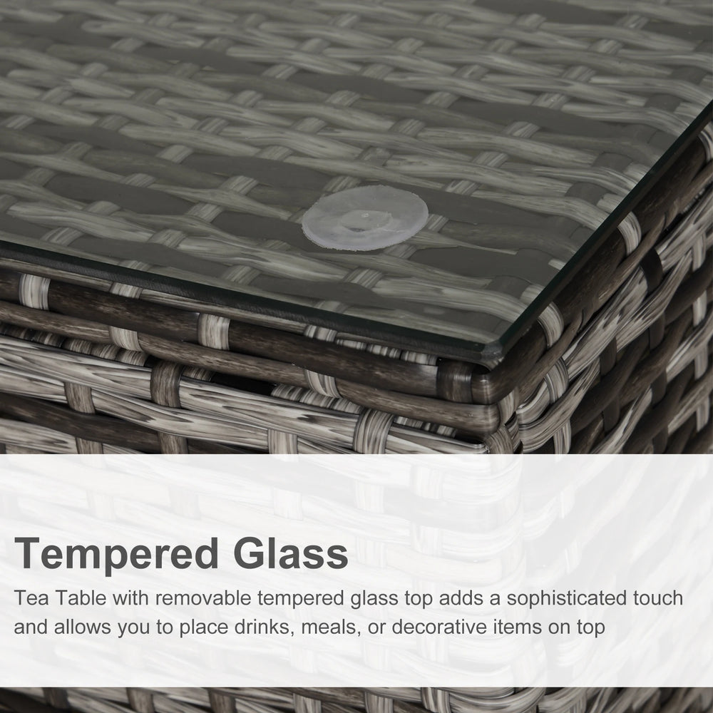 Outsunny Square PE Rattan Garden Table, with Glass Table Top - Grey