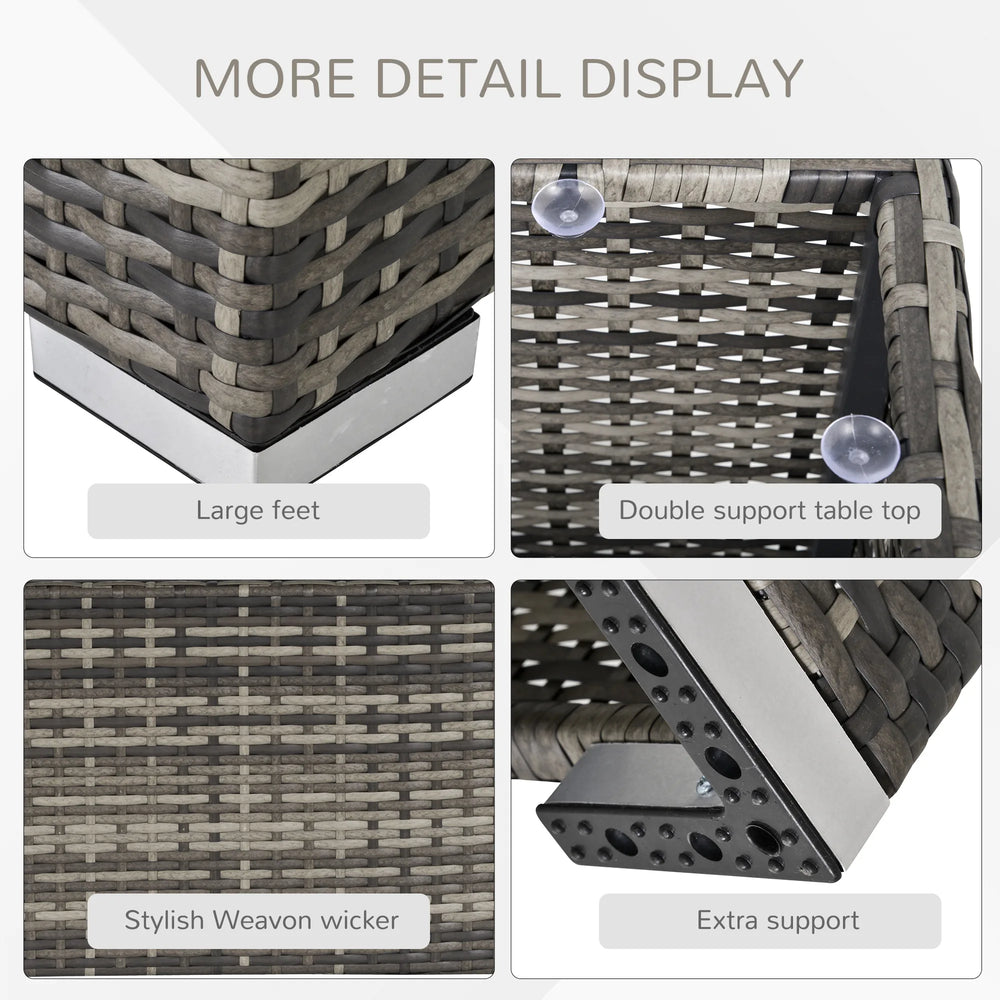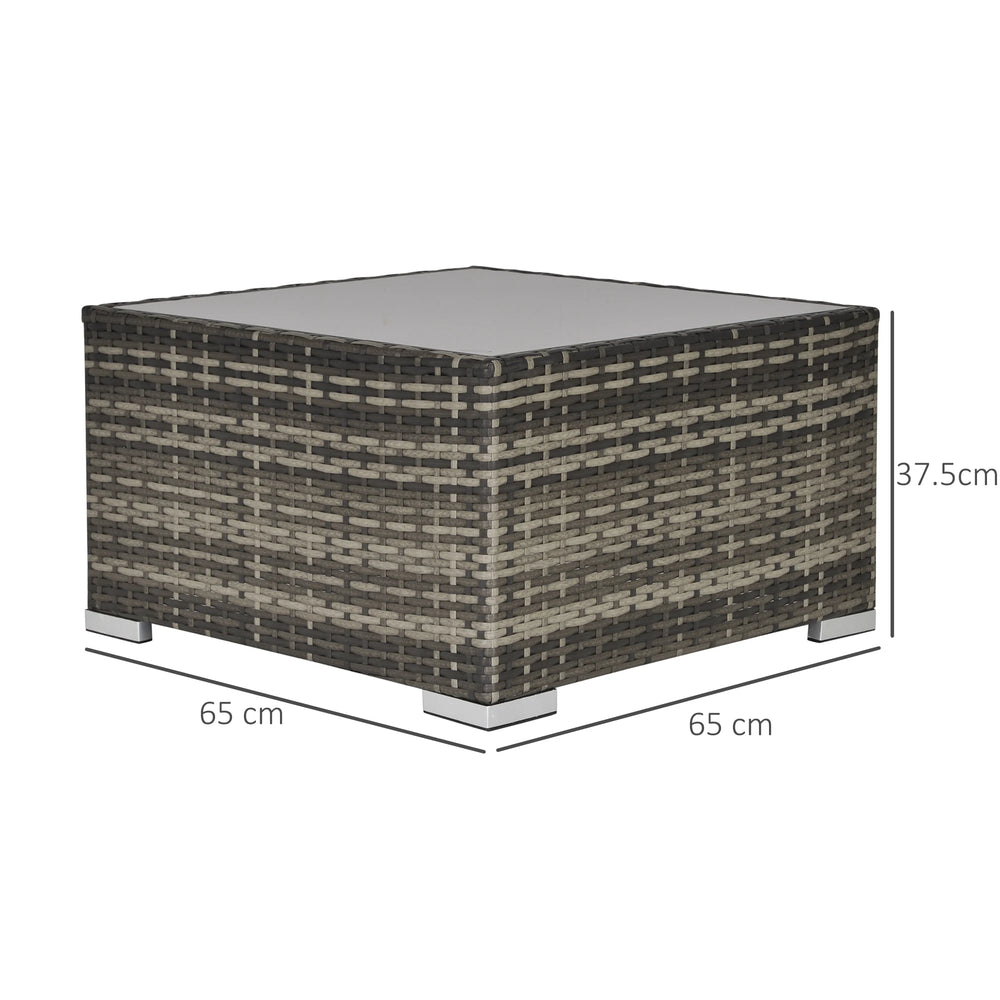 Outsunny Square PE Wicker Rattan Table with Glass Top - Dark Grey