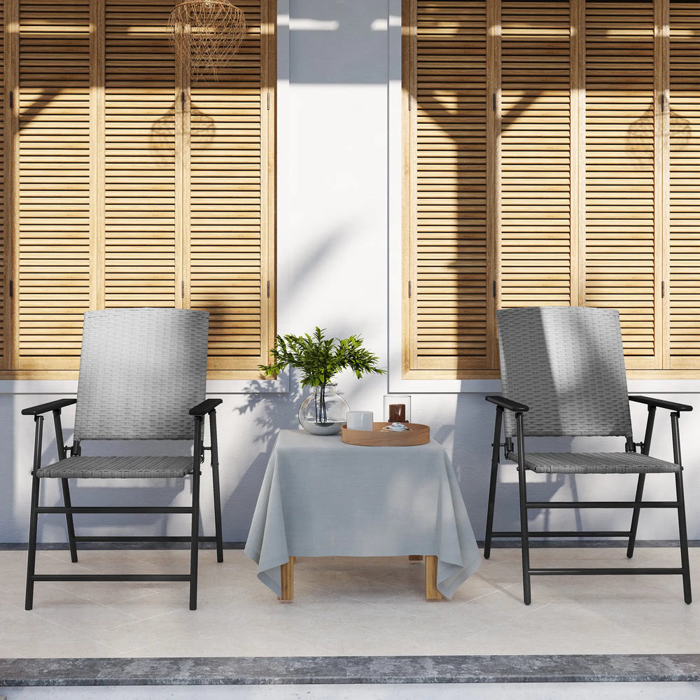 Outsunny Set of Two Folding Rattan Seat Chairs - Grey