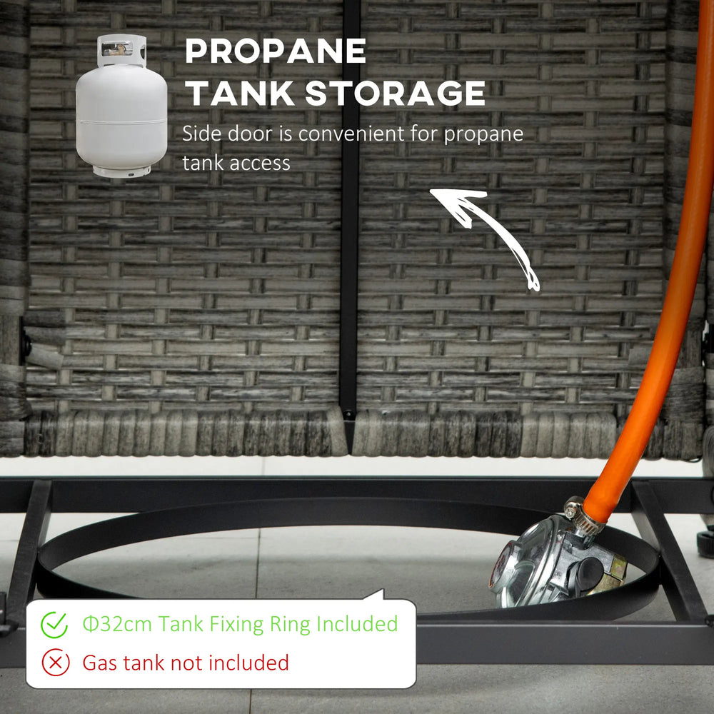 Outsunny Outdoor PE Rattan Gas Fire Pit Table, Patio Square Propane Heater with Rain Cover, Mesh Lid and Lava Stone, 40,000 BTU, Mixed Grey