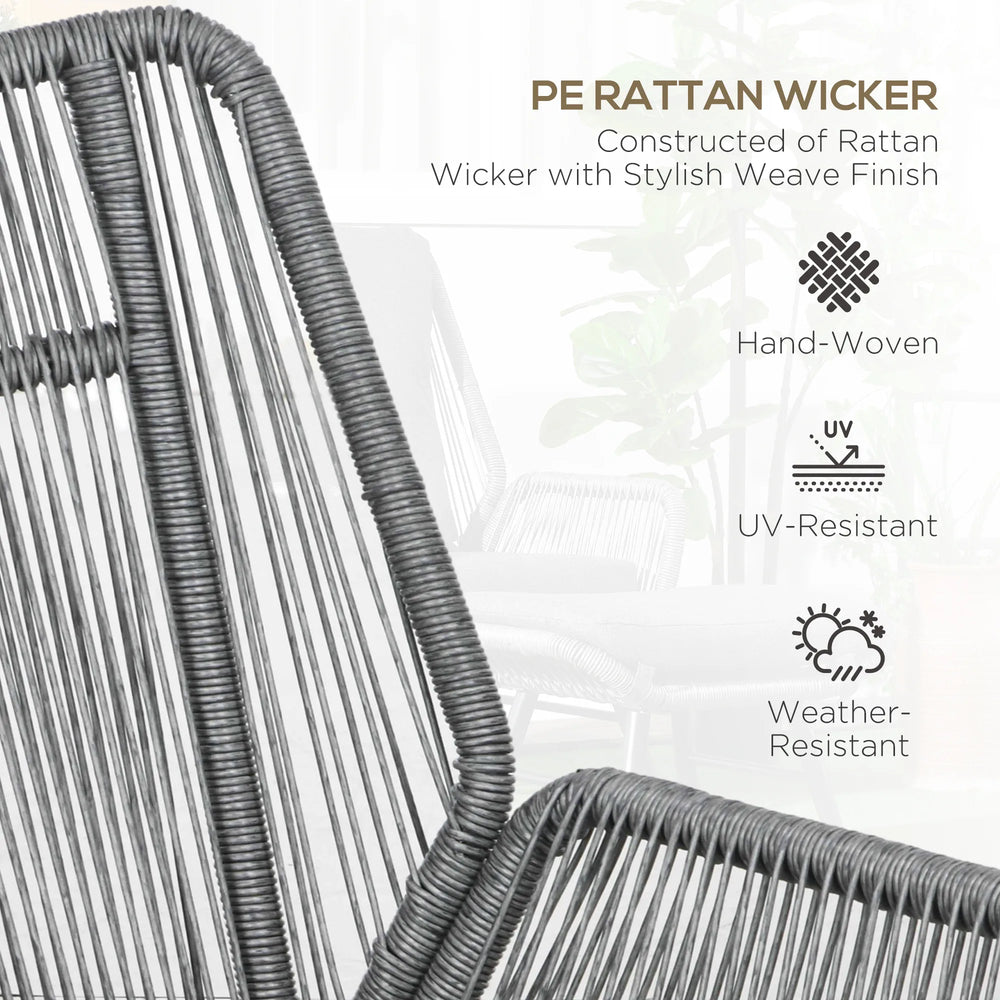 Outsunny String Rattan Armchair and Footstool Set, with Cushions - Grey