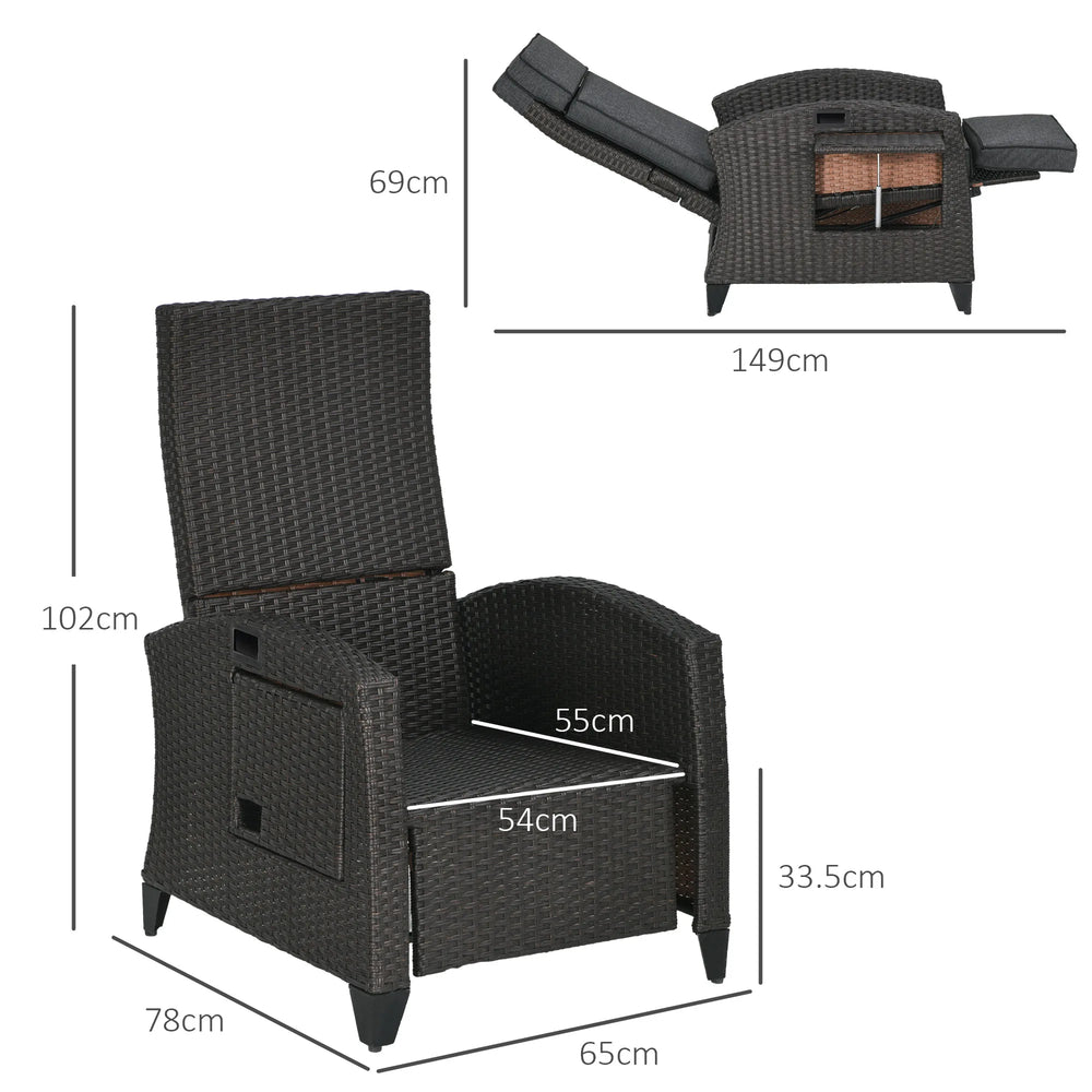 Outsunny Outdoor Recliner Chair with Adjustable Backrest and Footrest, Cushion, Side Tray, Dark Grey/Brown